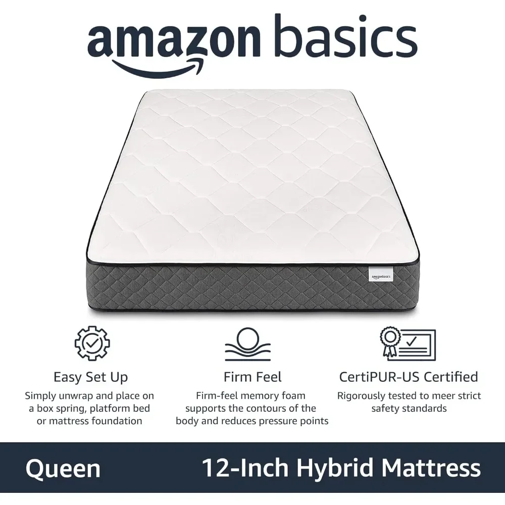 12-inch Mattress with Firm Cushions, Gel Memory Foam for Deeper Support, Cool-to-the-touch Top Fabric, Queen-size Mattress