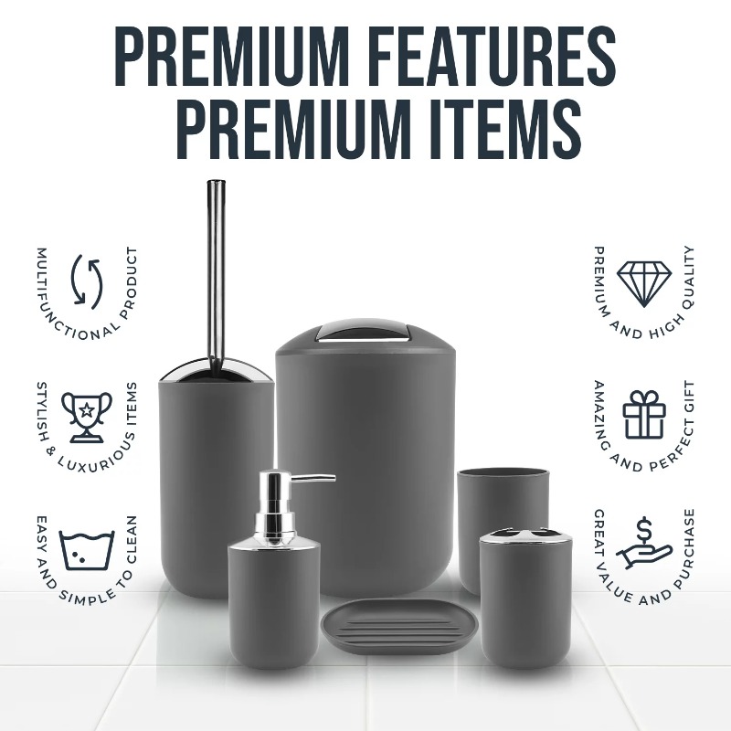 12 Piece Plastic Bath Accessories Set, Gray