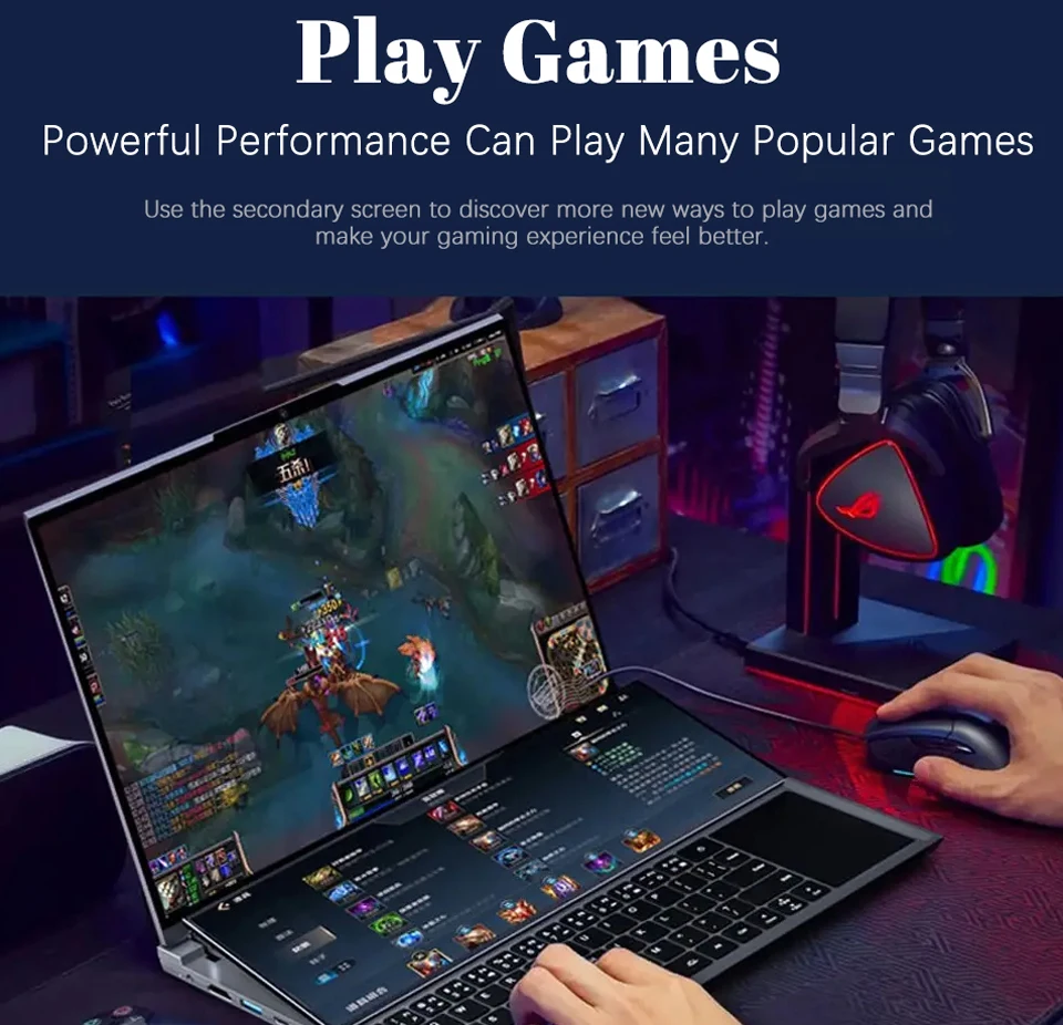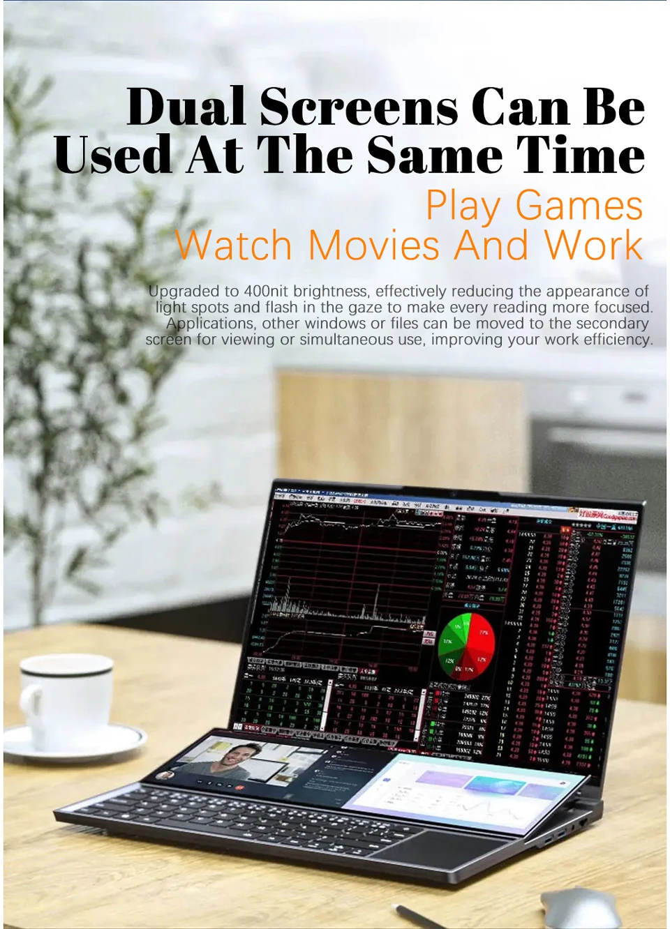 Dual screen 16"+14" narrow bezel Full HD dual screen with fine display. Dual screens, capable of working and watching TV programs at the same time. With office and entertainment functions.