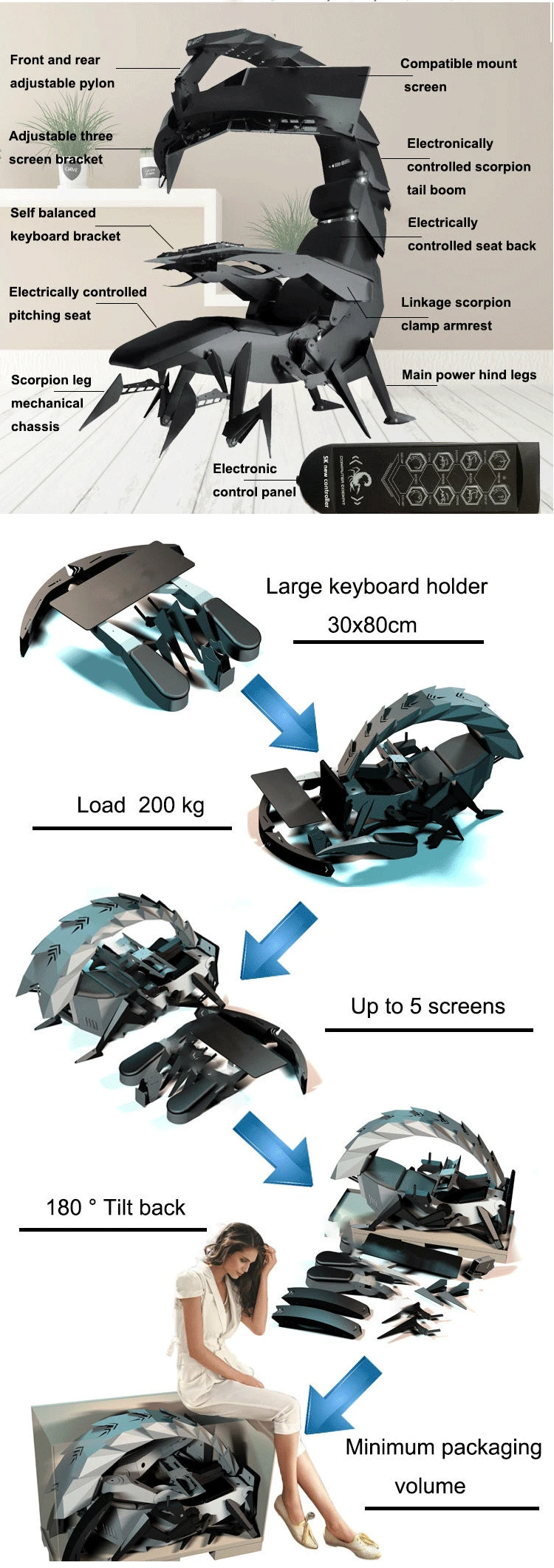 2024 New Design Custom LOGO Zero Gravity Scorpion Computer Cockpit Scorpion Gaming Chair