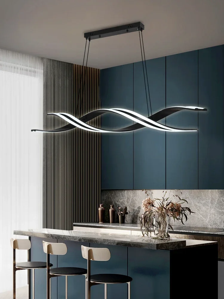 2024 Nordic Designer New Line Art Dining Room Chandelier Bar Modern New Minimalist Light Luxury Black Long Line Dining Room Lamp