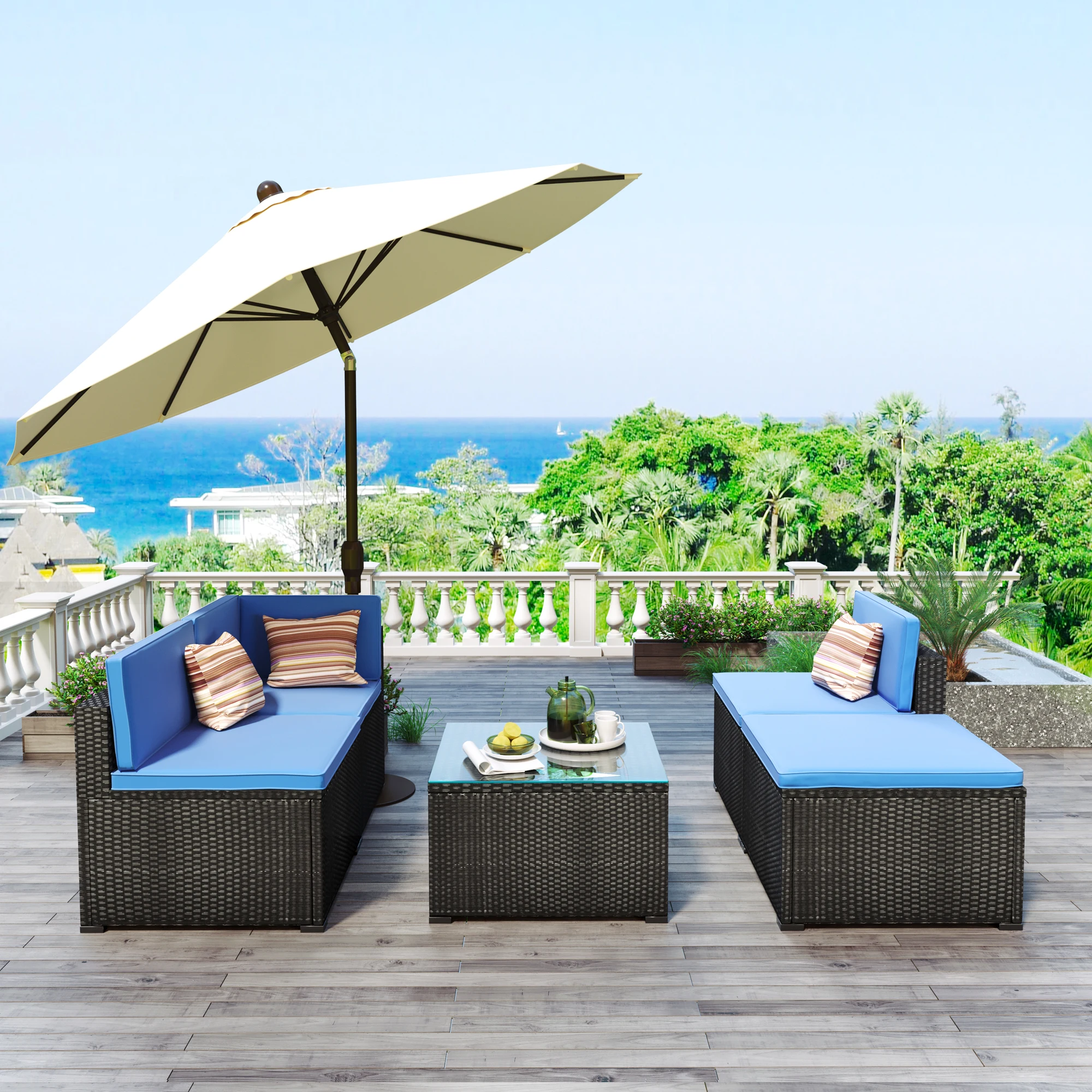5-Piece Patio Rattan PE Wicker Furniture Corner Sofa Set Patio Furniture Set For Backyard Porch Pool,