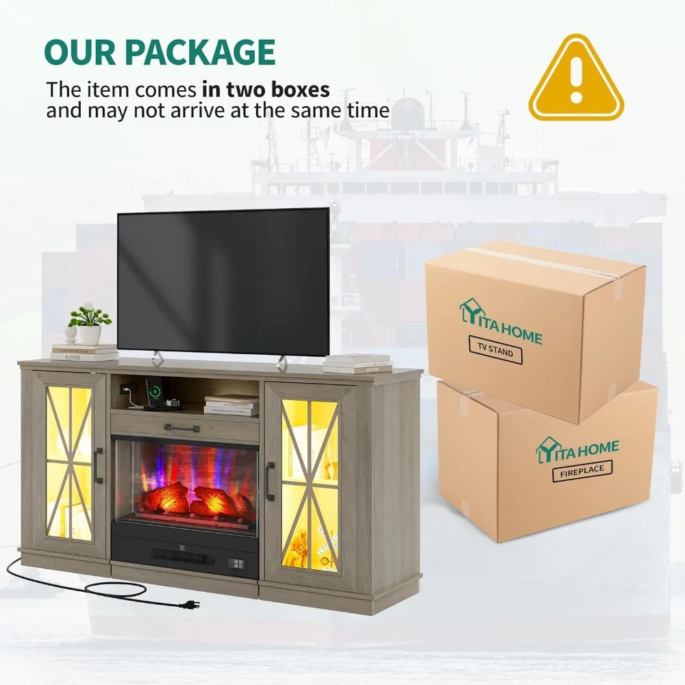 - Specifications: TV stand overall dimensions: 60"(W) x 34.5"(H) x 15.55"(D); Fireplace Dimensions: 24.5"(W) x 26.3"(H) x 10.8"(D). Note: Delivered in two packages that may not arrive at the same time.