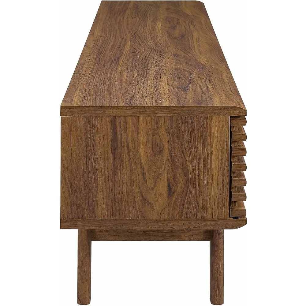 - MID-CENTURY TV CONSOLE - Transform your living space with retro modern intrigue. An organic aesthetic, linear detail, and flared profile bring iconic style to this mid-century TV stand