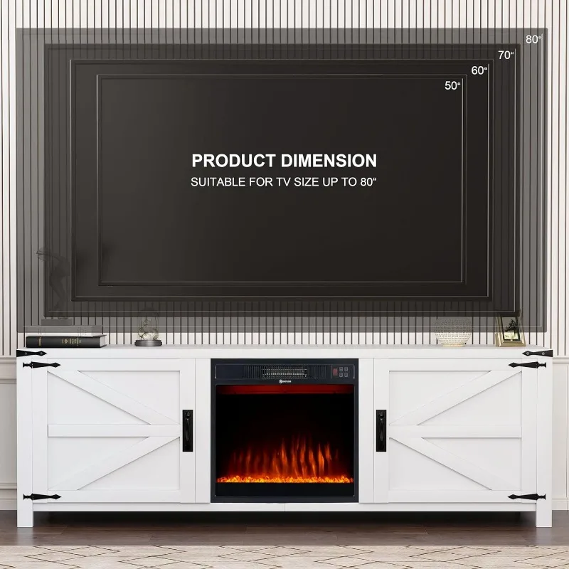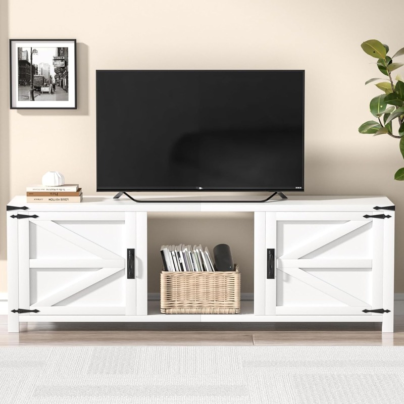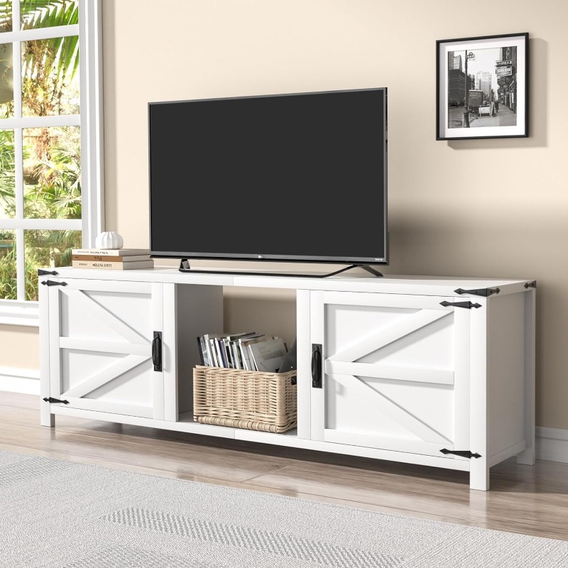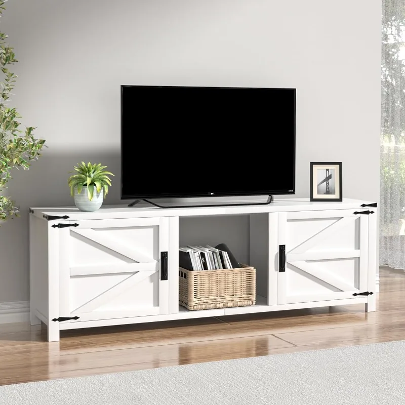 70" TV Stand with Double Barn Doors Storage Cabinets for TVs UP To 80 Inch, Farmhouse TV Entertainment Center for Living Room