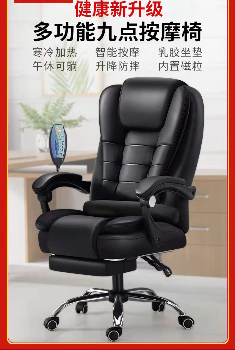 Adjustable Executive Massage Office Chair Reclining High Back Big Tall Leather Ergonomic Swivel Task Chair Footrest Furniture