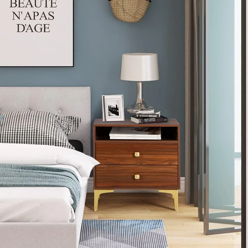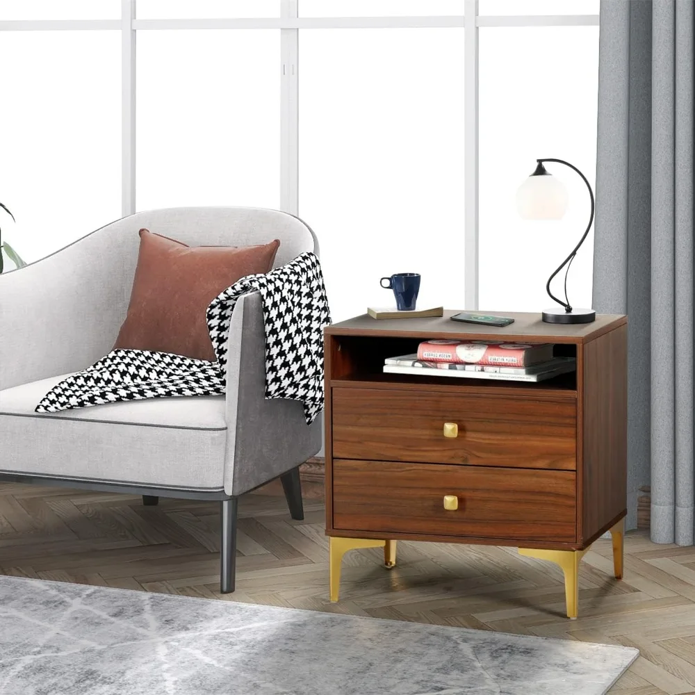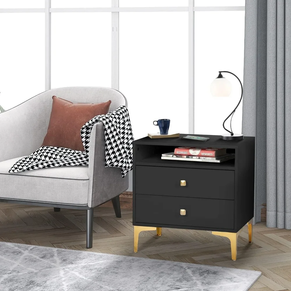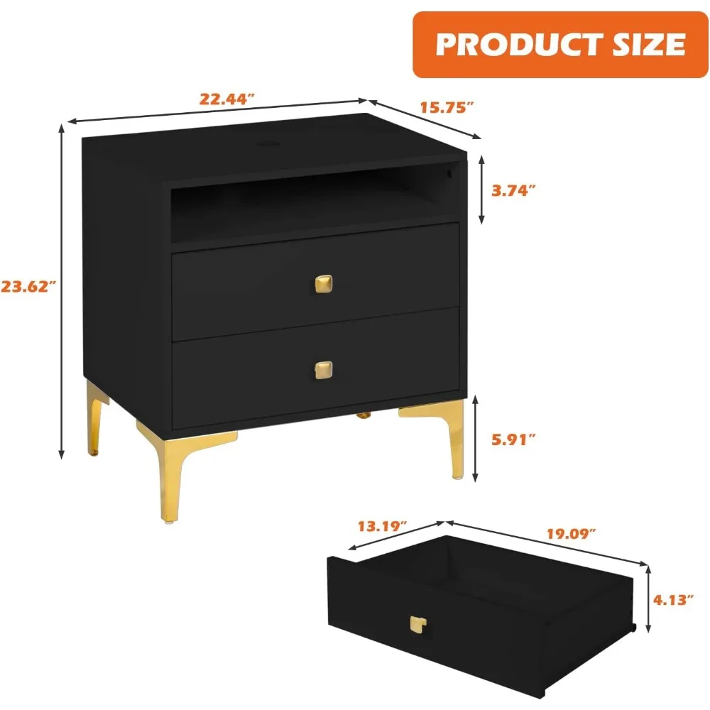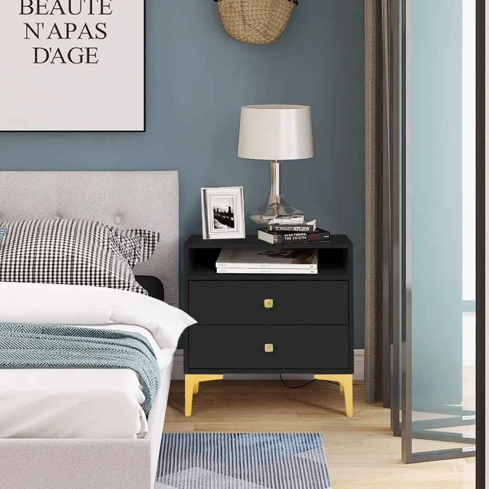 AILEEKISS Nightstands Set of 2 with Wireless Charging Function Wooden Night Stands 2 Sets with Drawers and Open Shelf
