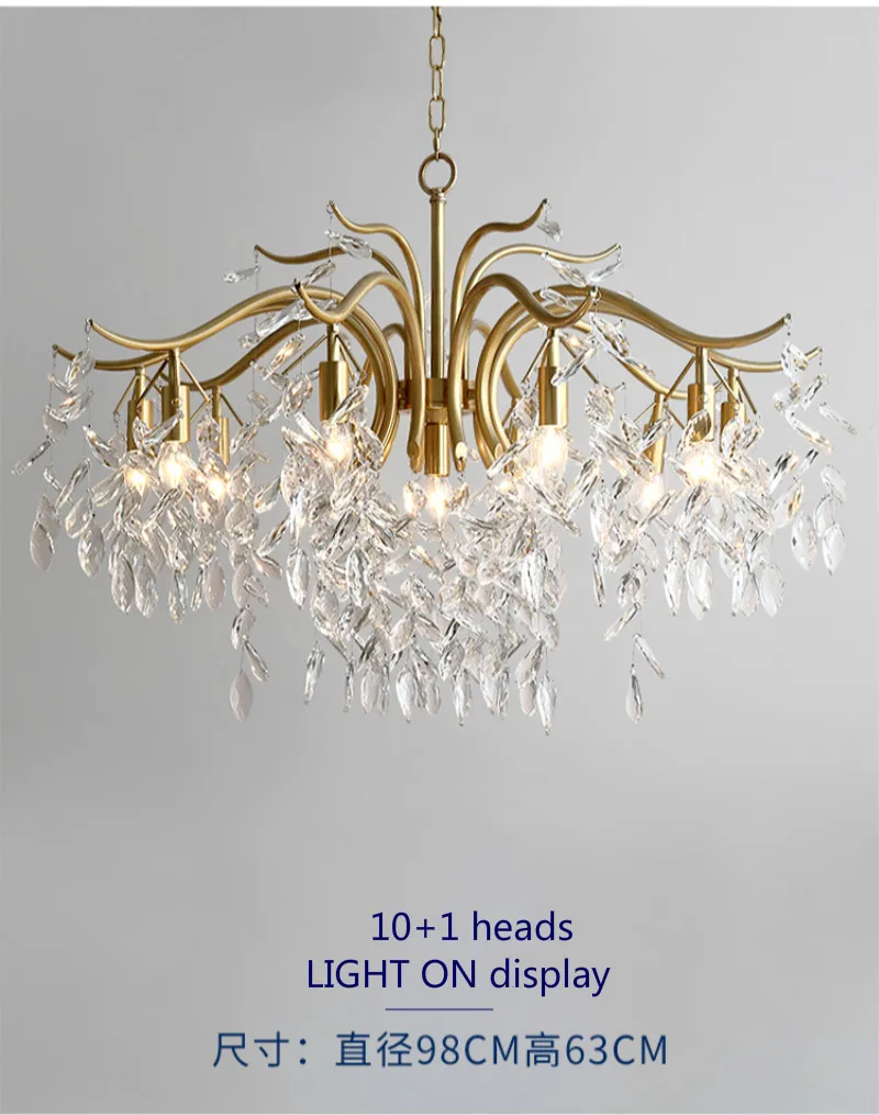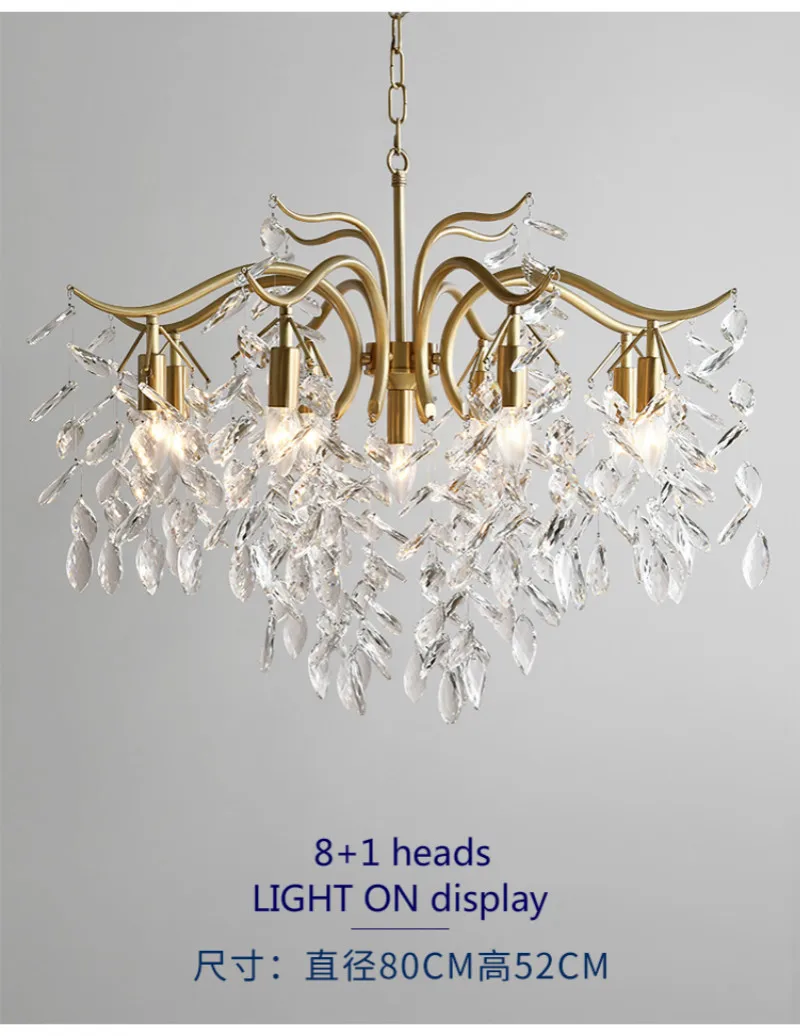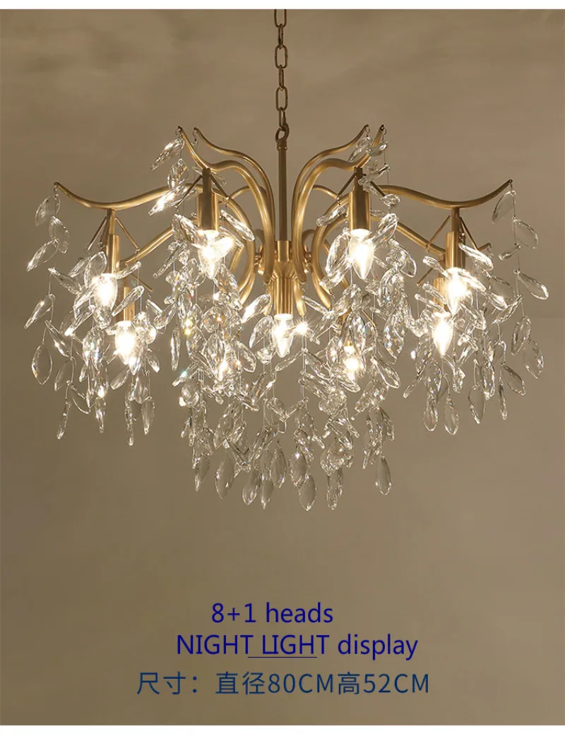 American Crystal Chandeliers Lighting Fixtures Golden Luxury Suspended Led Chandeliers for Restaurant Livingroom Bedroom Aisle