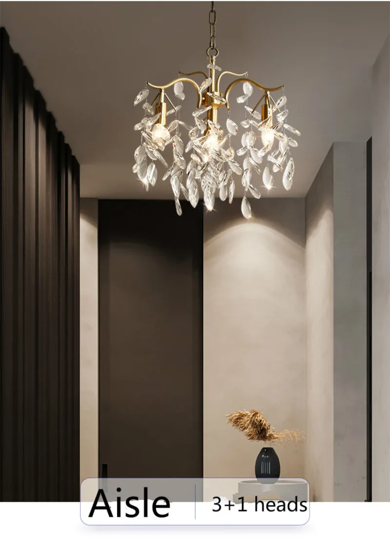 American Crystal Chandeliers Lighting Fixtures Golden Luxury Suspended Led Pendant Light for Restaurant Livingroom Bedroom Aisle