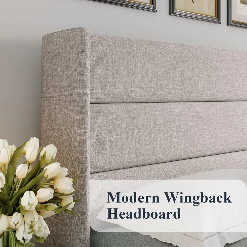 - Elegant Headboard: High wingback headboard adds elegant aesthetics to your bedroom. Button tufted headboard shows classic fashion