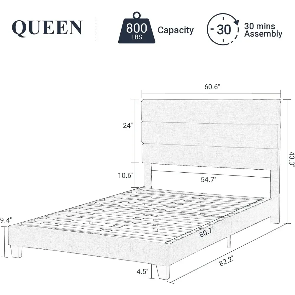 - Minimalist & Noise-Free: The bed frame queen size with a padded upholstered headboard It's stylishly suitable for different types of decor. The EVA mute bar prevent noise from friction, no squeaking or creaking.
