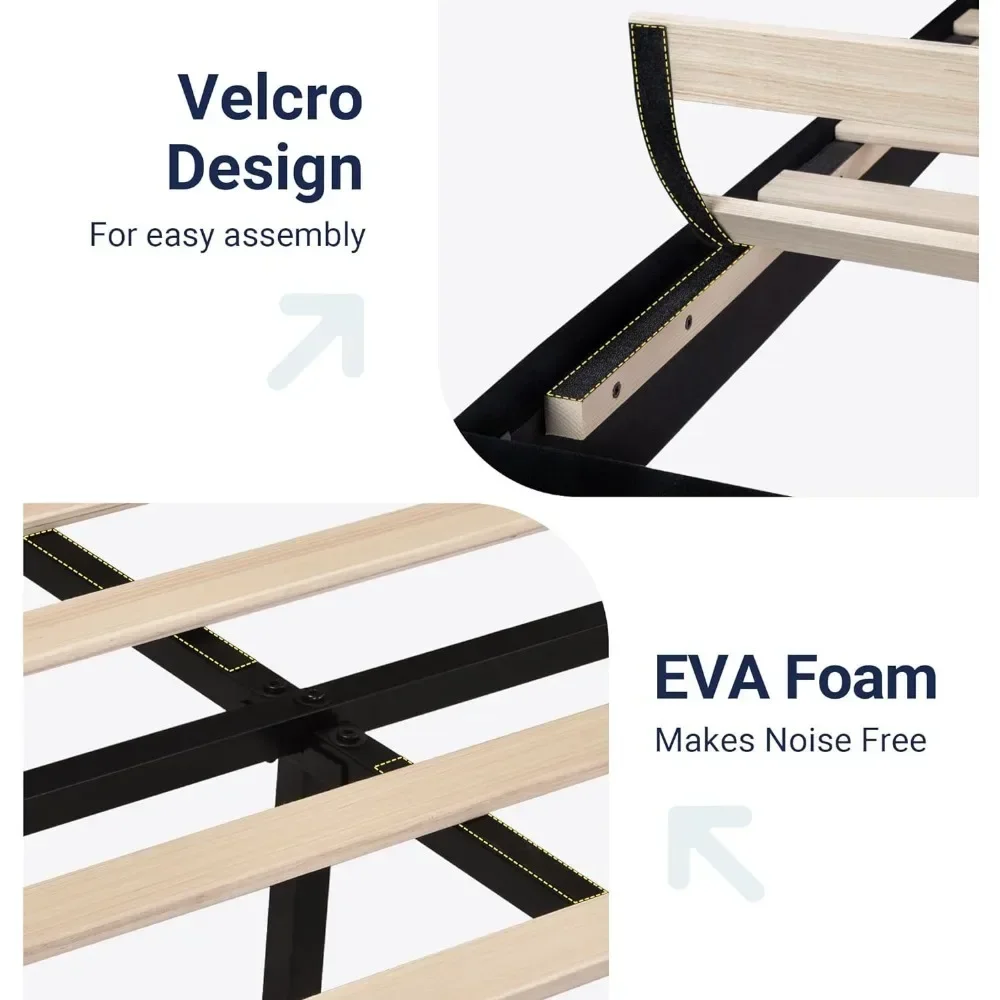 - No Box Spring Needed: Designed with solid wood slats, simple assembly and the most important thing to note is the mattress doesn't slide around on it, memory foam or spring mattress without the need for a box spring.