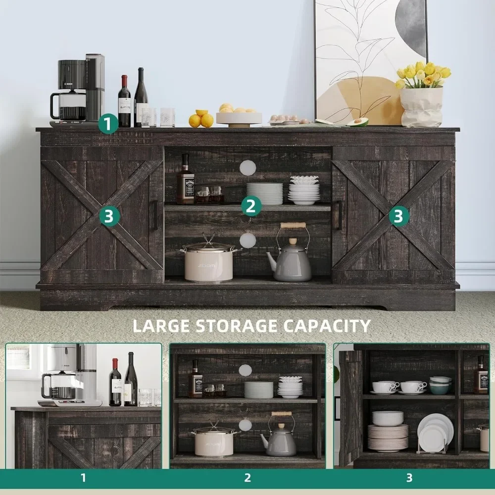 Buffet Cabinet, 59.5" Farmhouse Sideboard Buffet Storage Cabinet with Barn Door Coffee Bar Cabinet with Capacity 300 lbs