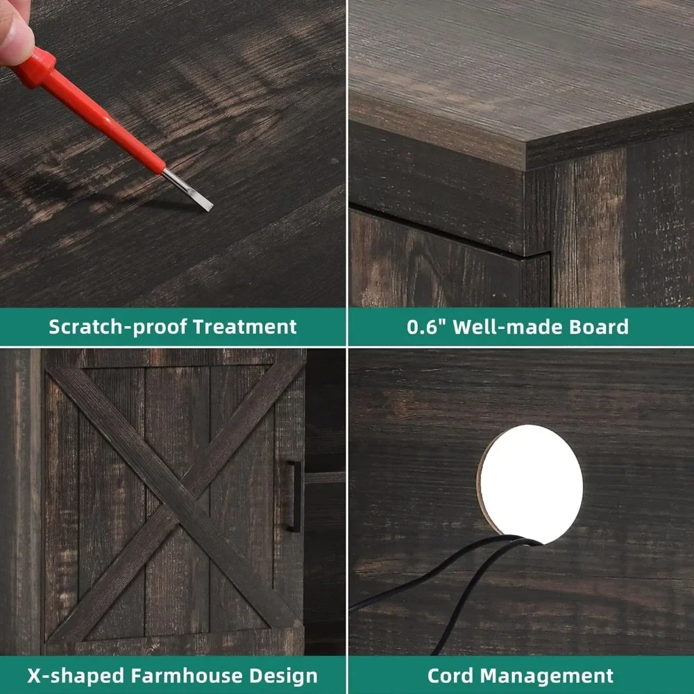 Barn Door Sideboard Buffet Table & TV Stand for 65 Inch