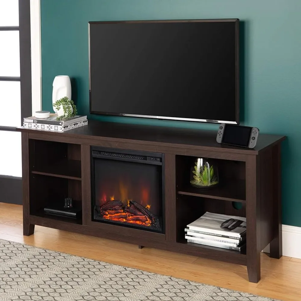 Classic 4 Cubby Fireplace TV Stand for TVs Up to 65 Inches Modular Furniture Living Room 58 Inch Espresso Freight Free