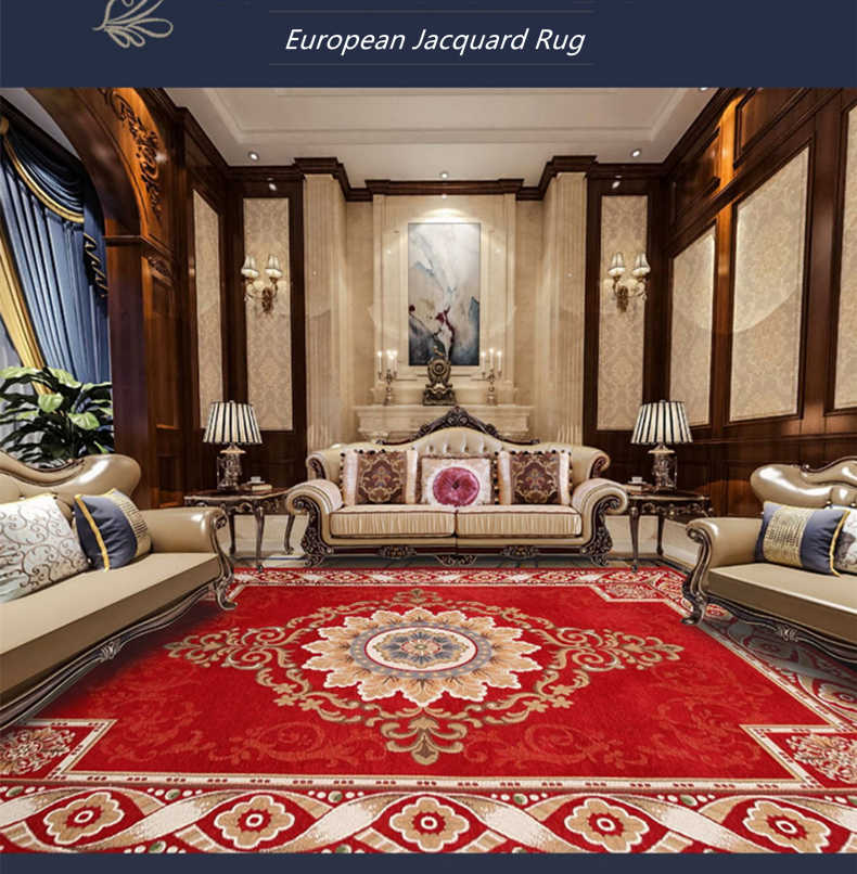 Classic Jacquard Carpet For Living Room Europe Red Carpet Rug Home Bedroom Kids Room Floor Mat Bedside Decor Weave Rug Alfombra