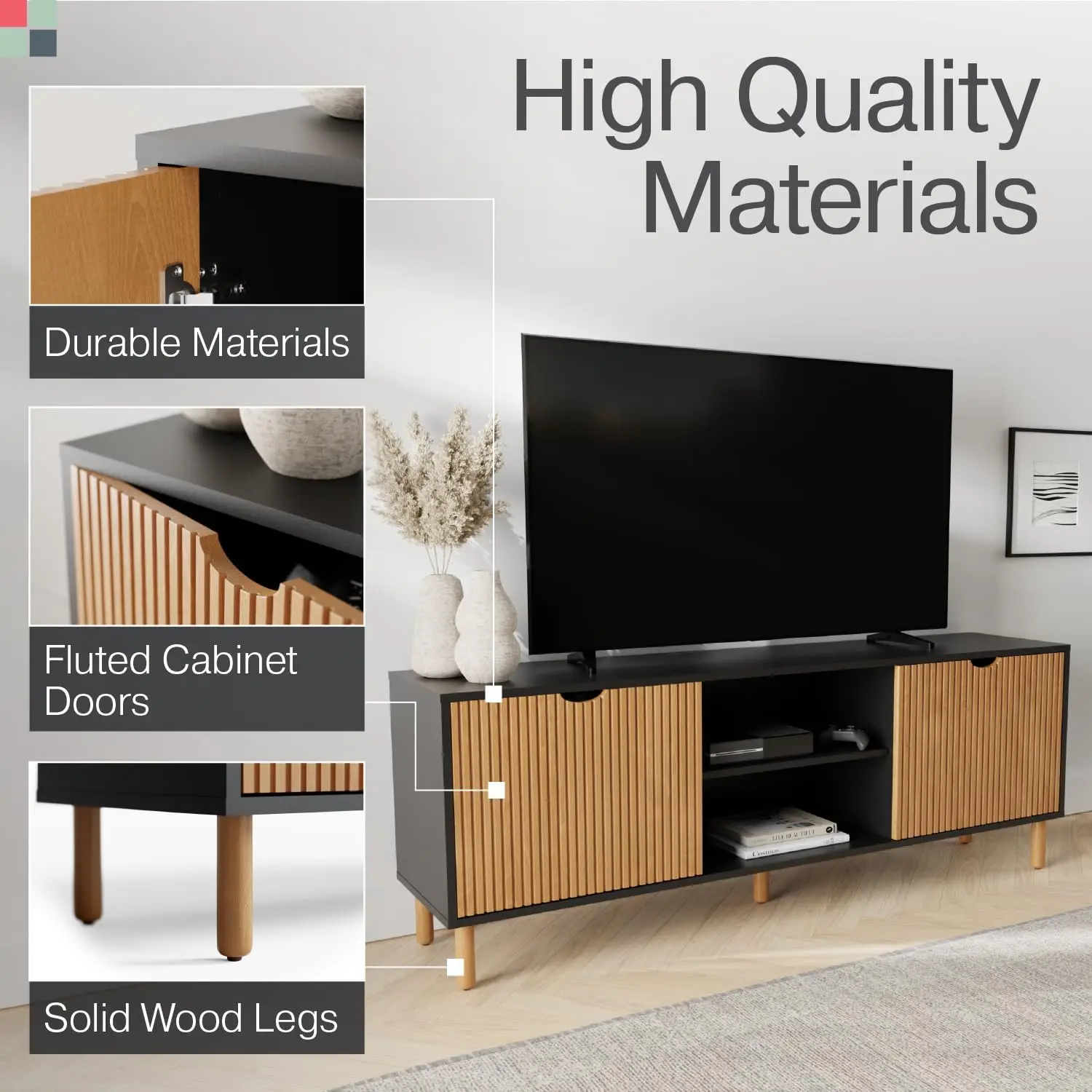 - Entertainment Center - Give your living room a modern and sophisticated look with with Stead's Fluted TV Stand; whether you prefer a mid-century or Scandinavian style, this storage cabinet will effortlessly blend in with your existing decor