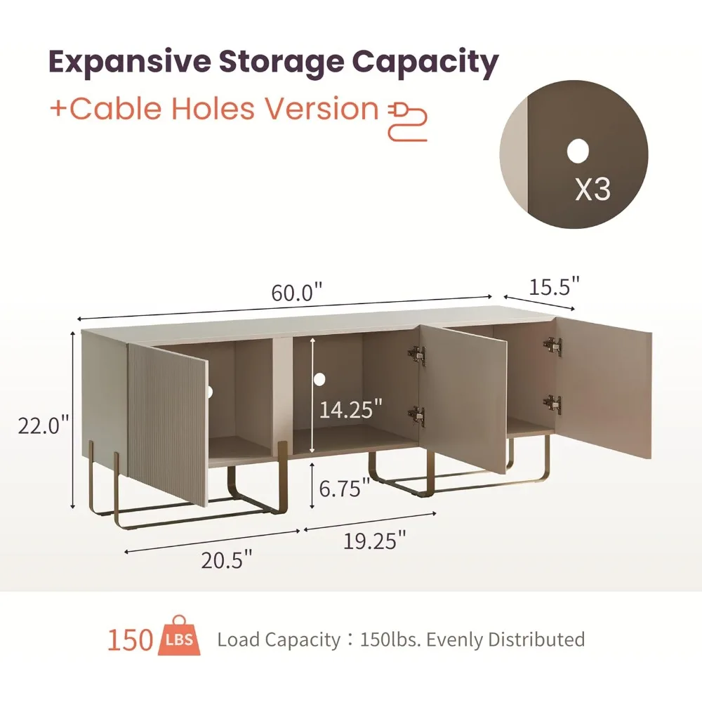 Contemporary Modern Style 60" TV Stand with 3 Storage Cabinets, Entertainment Center Console for Living Room Metal Legs