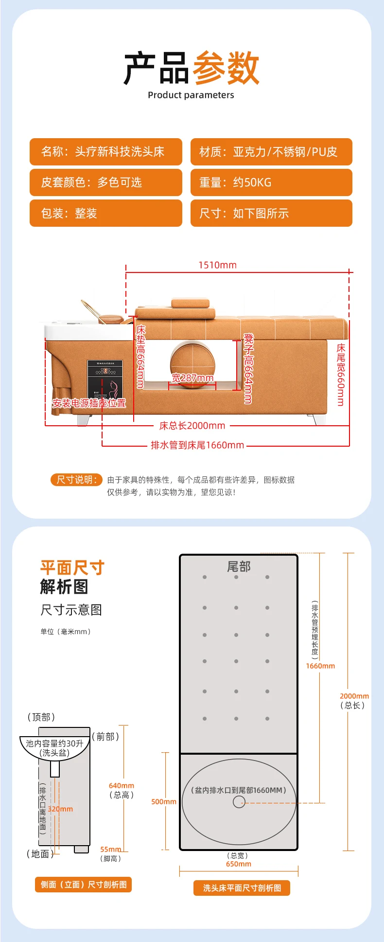 Cosmetic Salon Shampoo Chair Hair Washing Bed Hairdressing Shampoo Chair Head Spa Equipment Sillas Barber Shop Furniture ZT50SC
