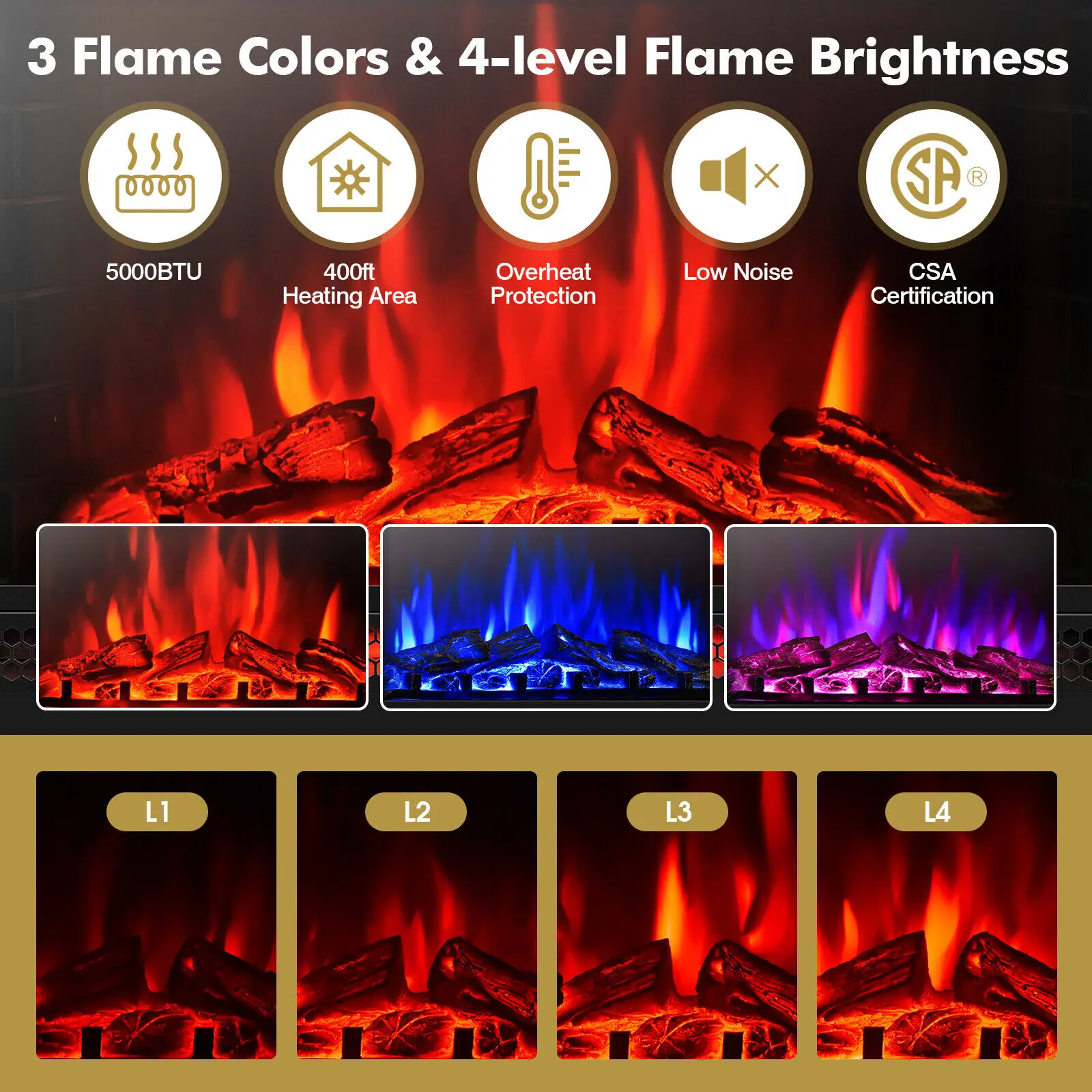 Features: 2 Heat Levels & Warm Your Home, Realistic Flame Effect& Dual Control