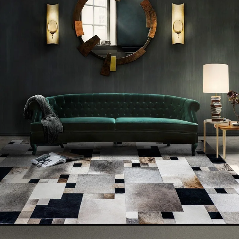 Cowhide Leather Pattern Print Carpet Irregular Living Room Gray Artist'S Product Geometric Floor Mat Black And White Gray Rugs