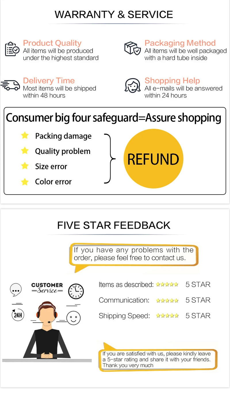 3. Due to different display methods, there will be slight color difference. The size is measured by hand, so there will be a 1-3cm size error. The color and size of the goods received shall prevail. Please don't place an order if you mind.