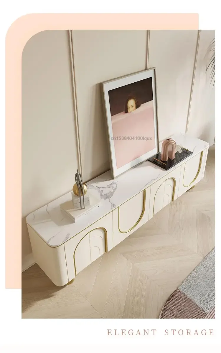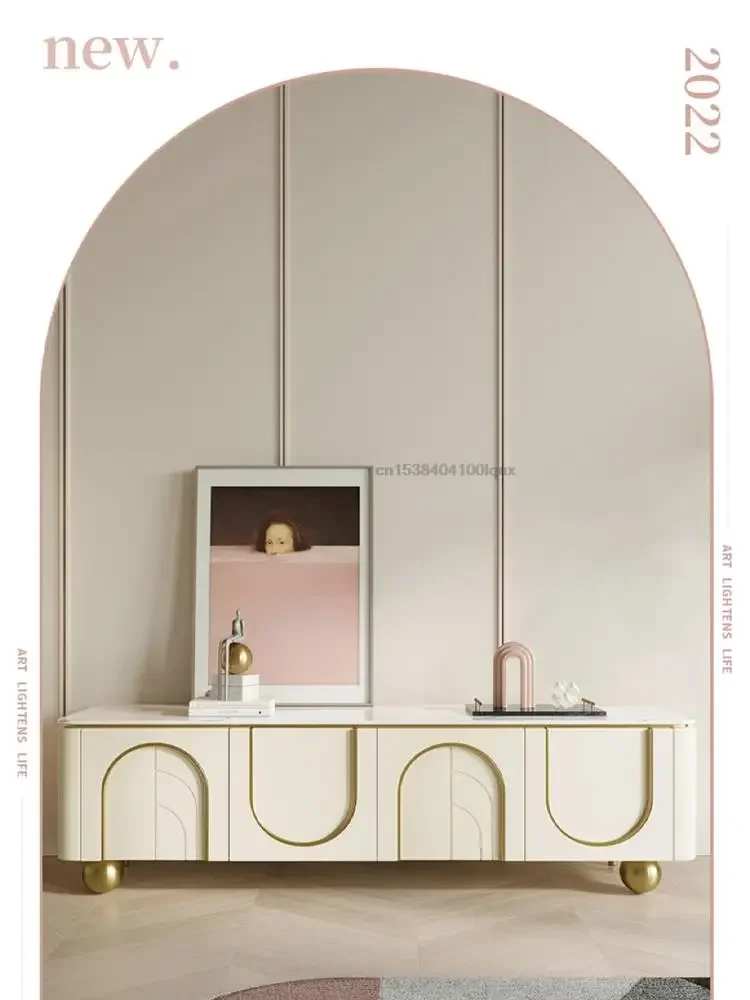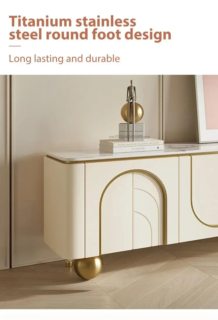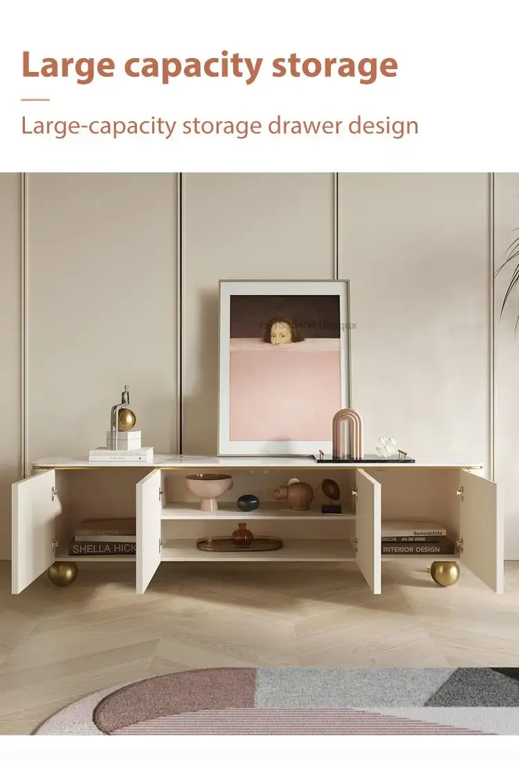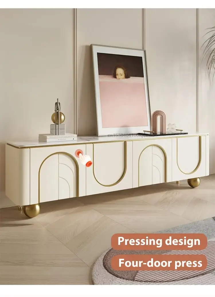 Cream Style TV Cabinets Large Storage Gold Ball Stainless Steel Feet Pressed Doors Concise TV Stand Living Room Furniture