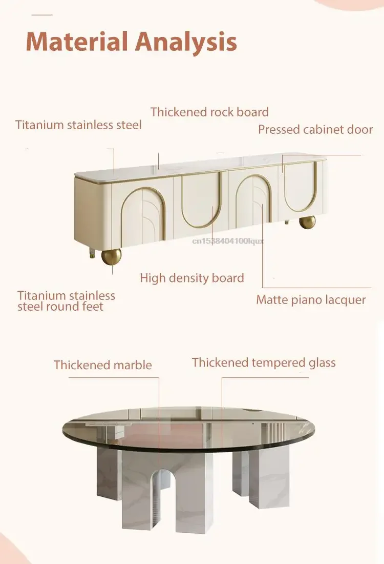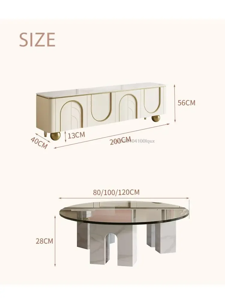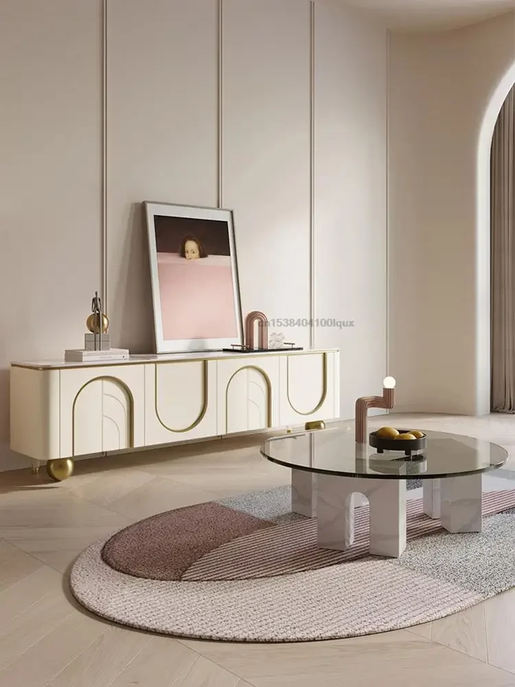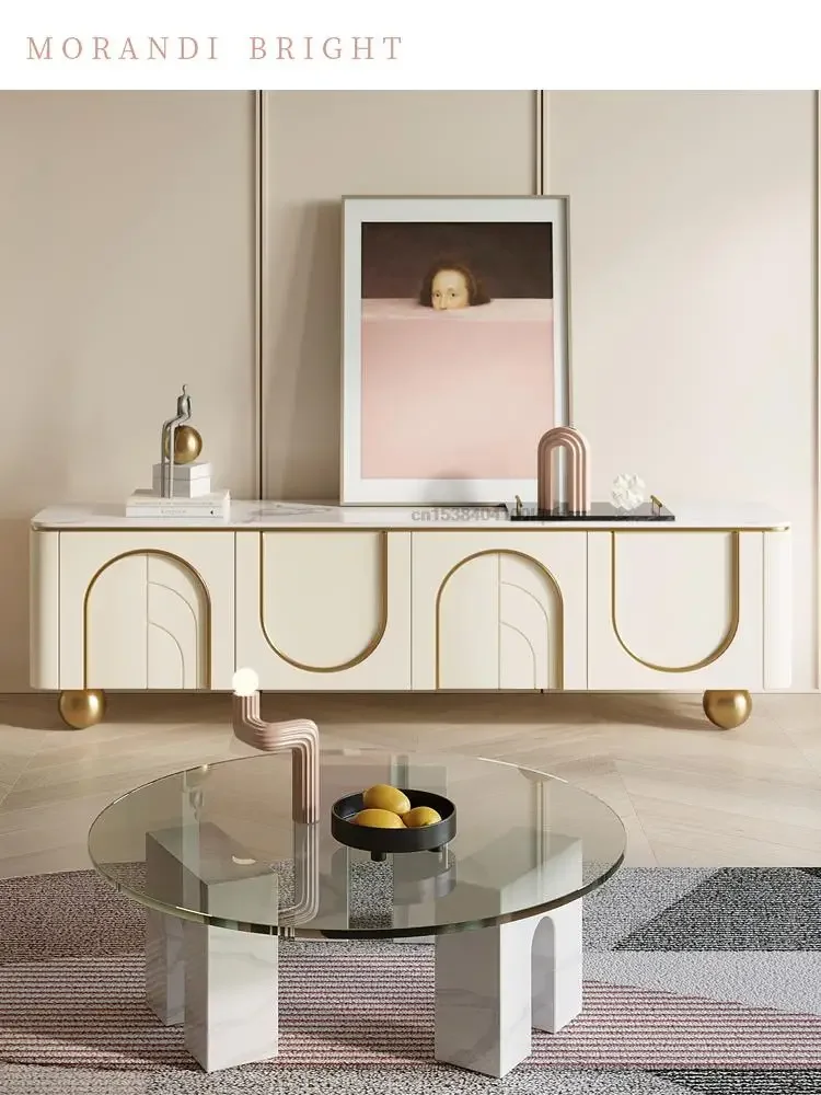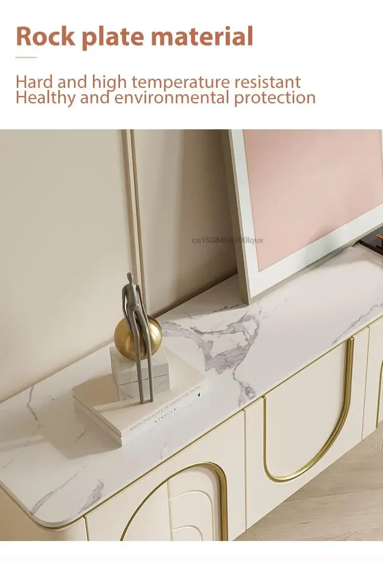 Cream Style TV Cabinets Large Storage Gold Ball Stainless Steel Feet Pressed Doors Concise TV Stand Living Room Furniture