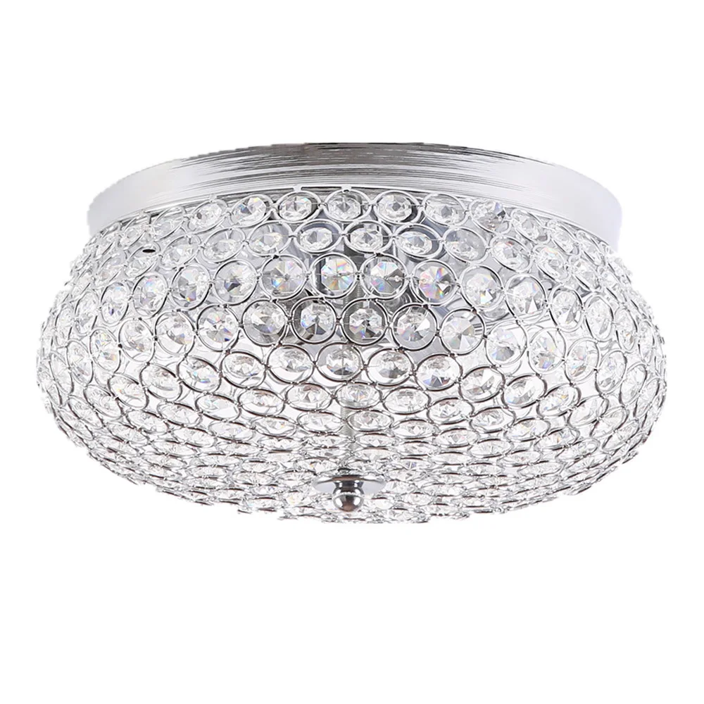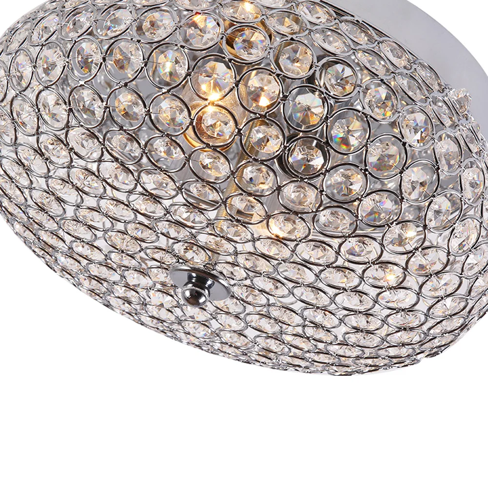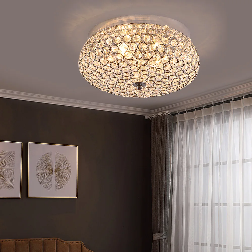 Crystal Ceiling Light LED Modern Luxury Flush Mount Chandelier Home Decor Lighting Fixture for Living Room Bedroom Round 30cm