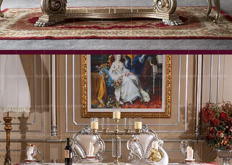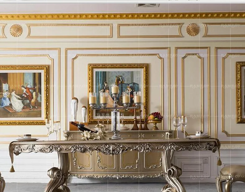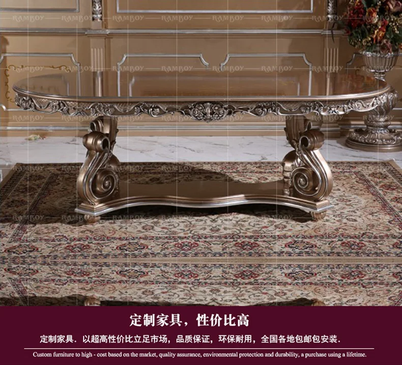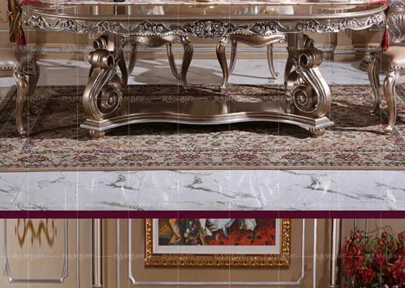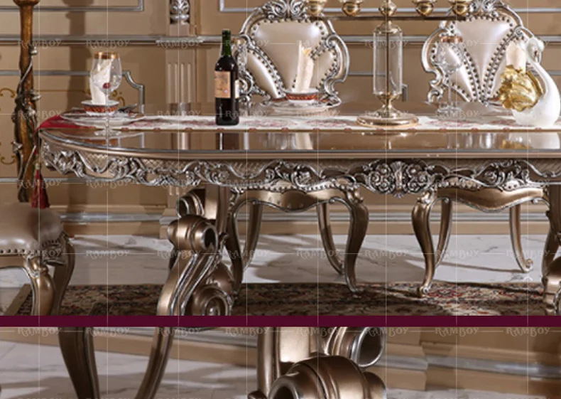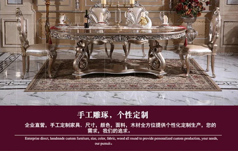 Custom European carved wood dining tables and chairs French palace villa luxury dining tables and chairs combination