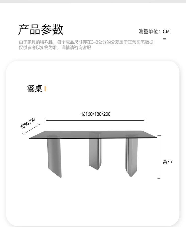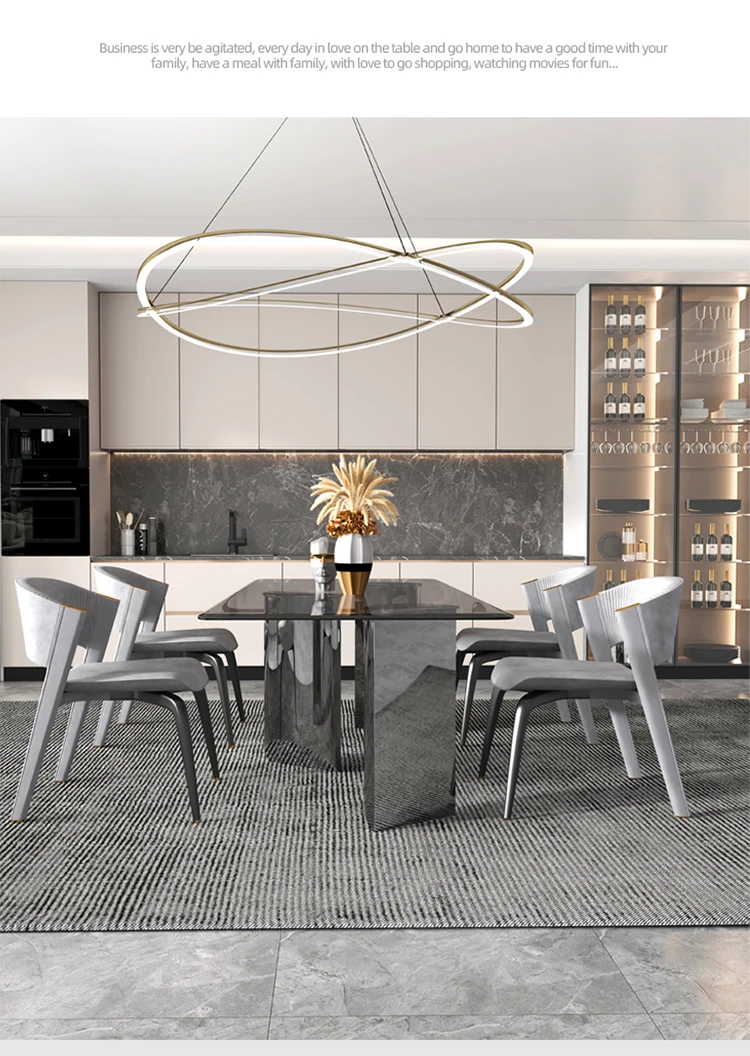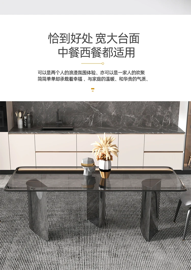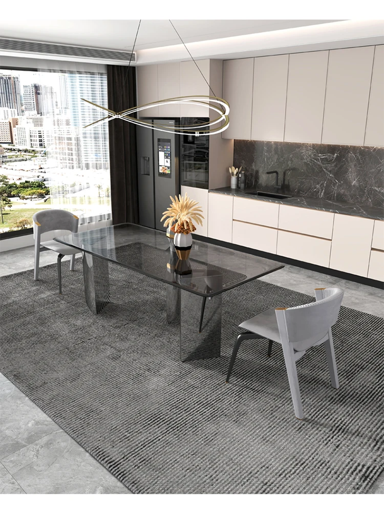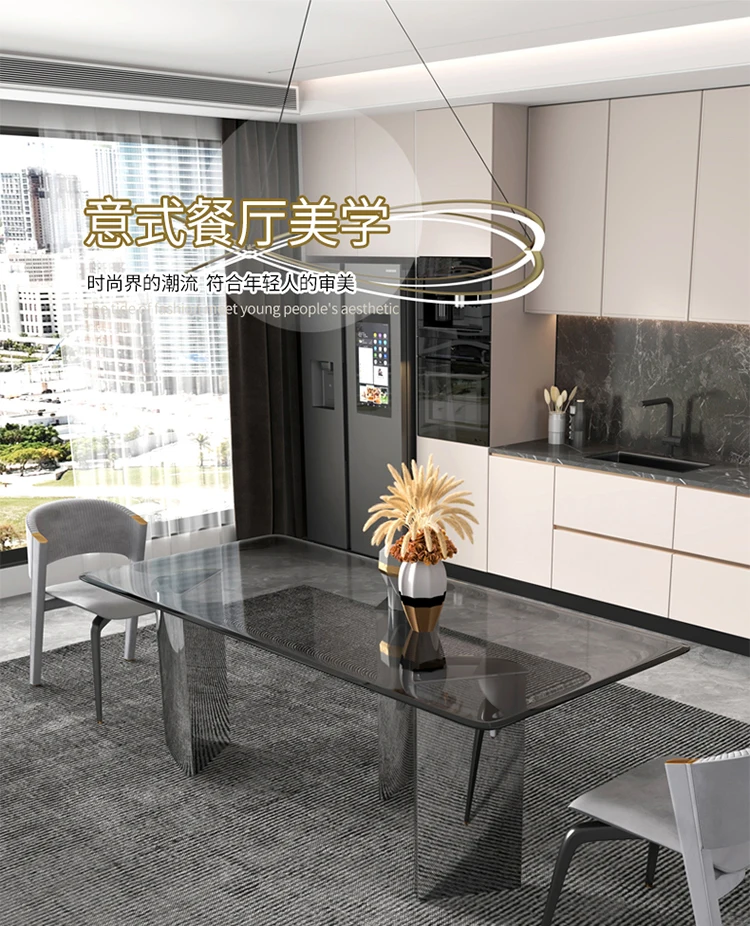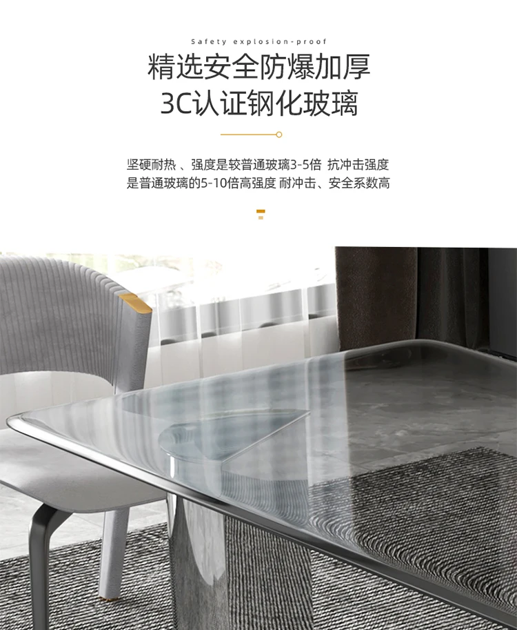 Custom luxury tempered glass dining table rectangular dining table modern minimalist designer dining table and chair combination