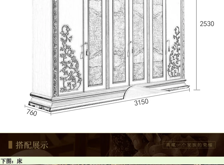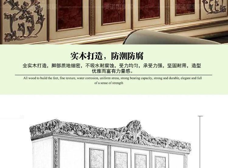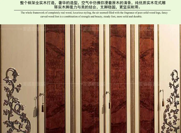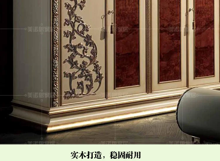 Custom villa furniture Italian luxury wardrobe European solid wood carved four door wardrobe bedroom locker custom wardrobe