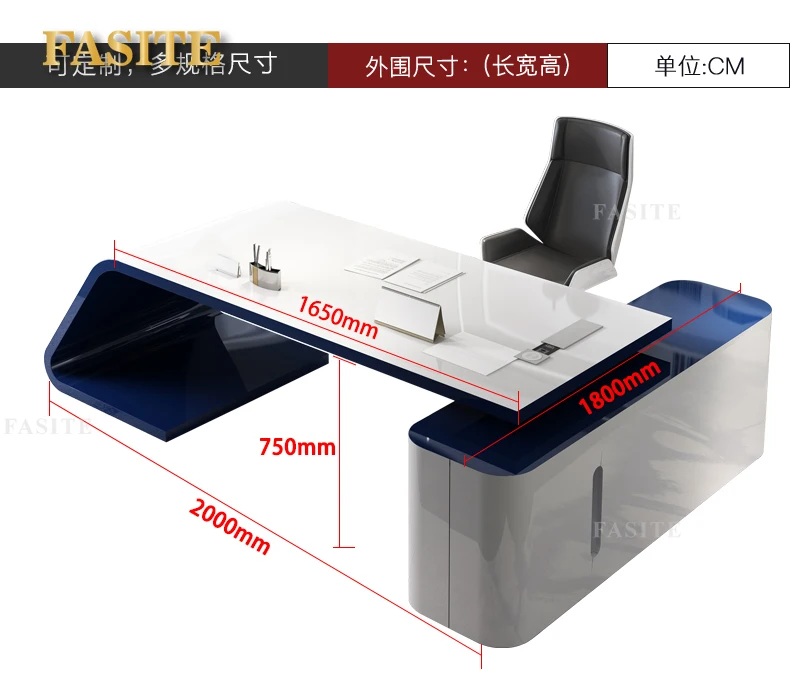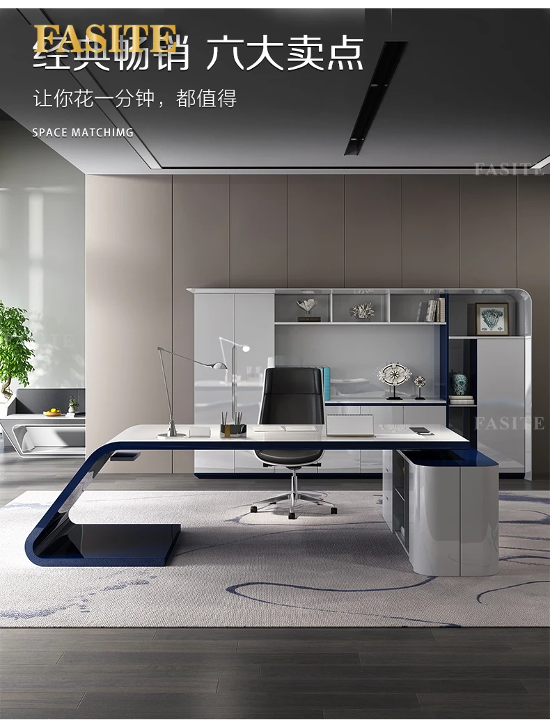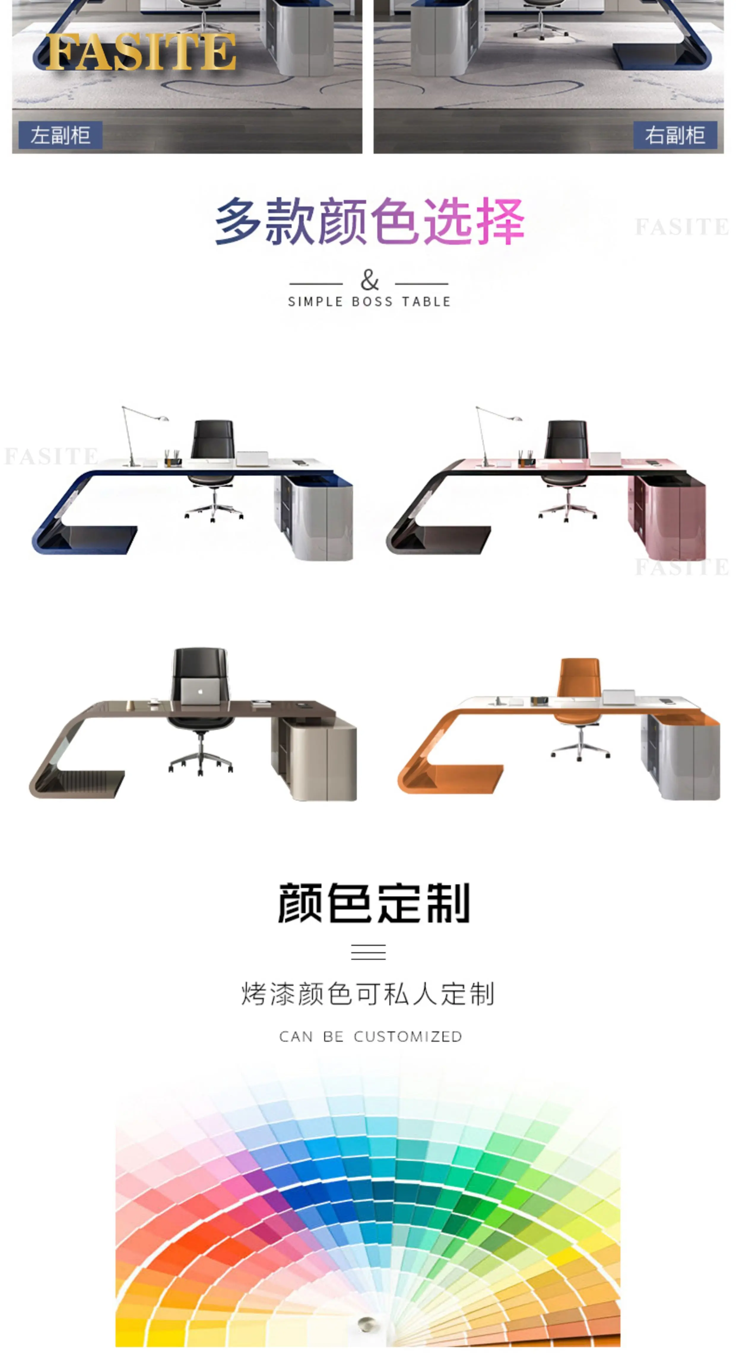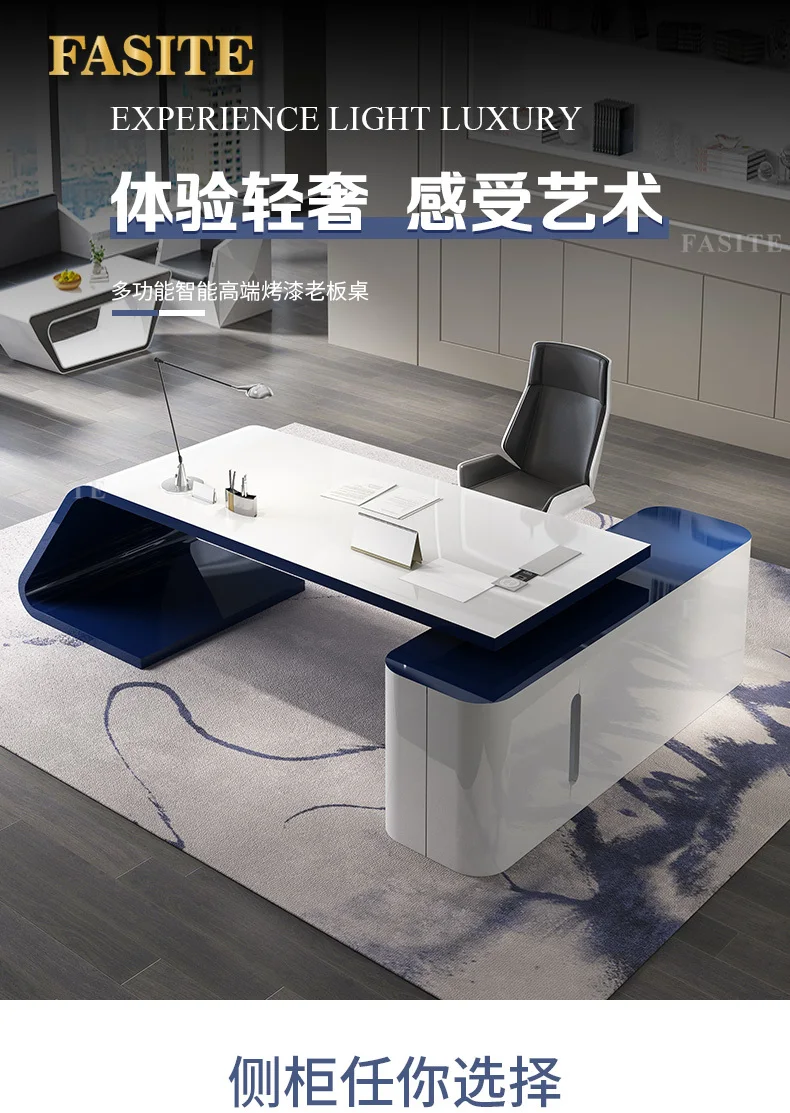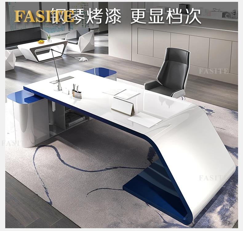 Customized baking paint, fashionable and luxurious manager's desk, office furniture, simple and modern large desk