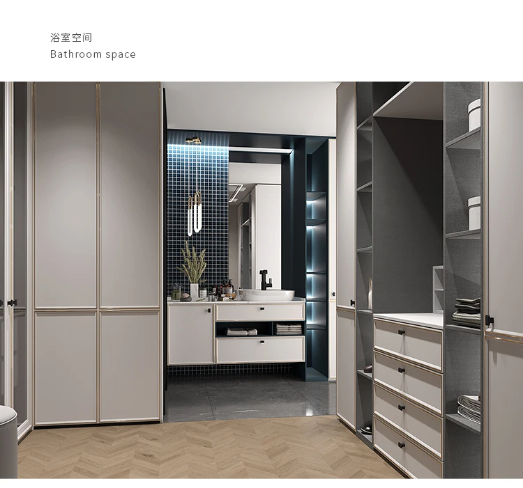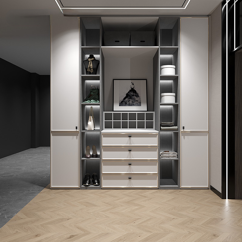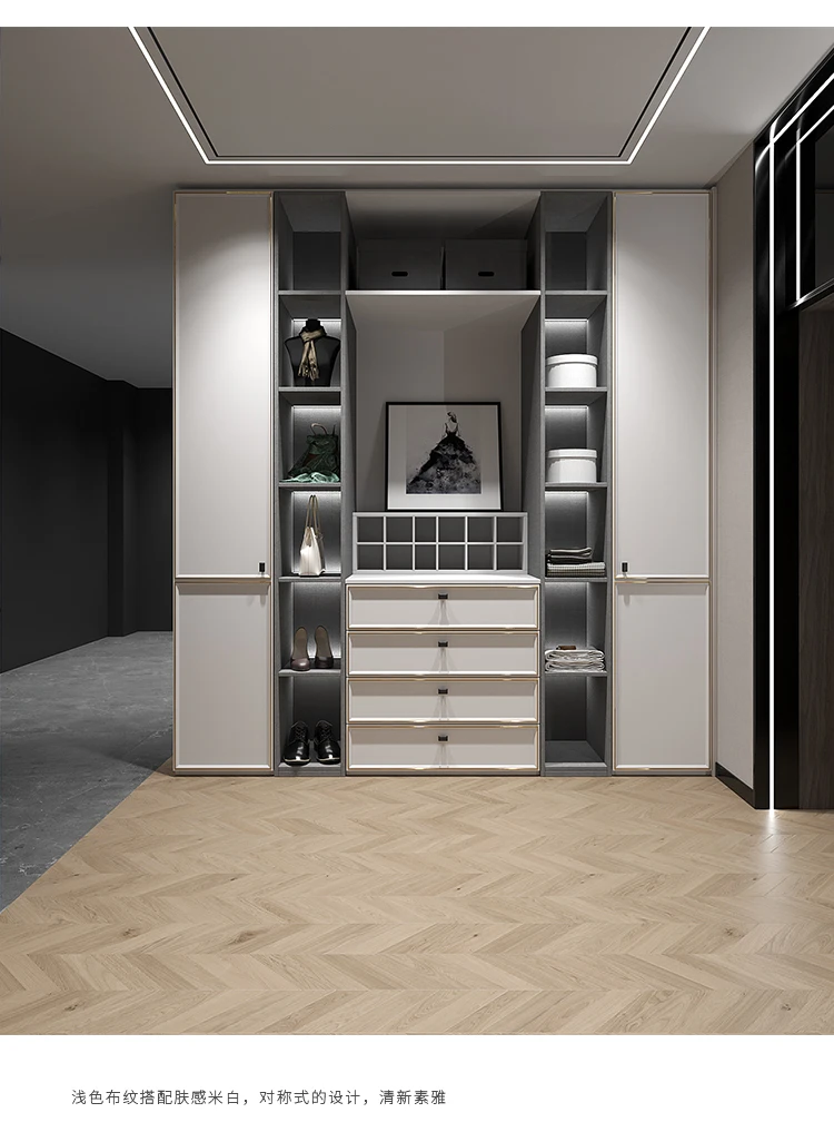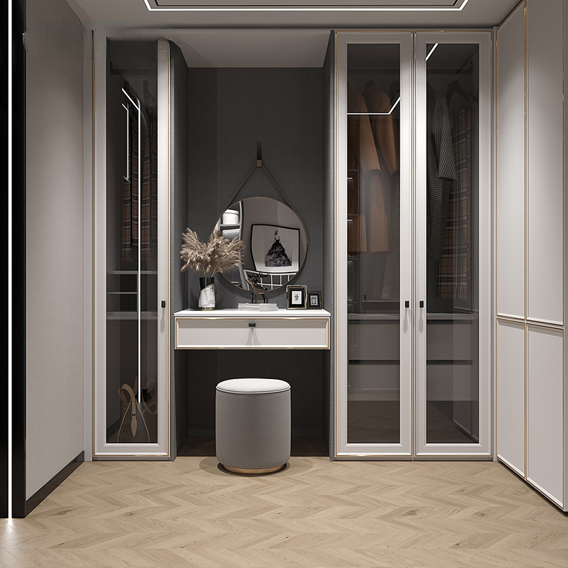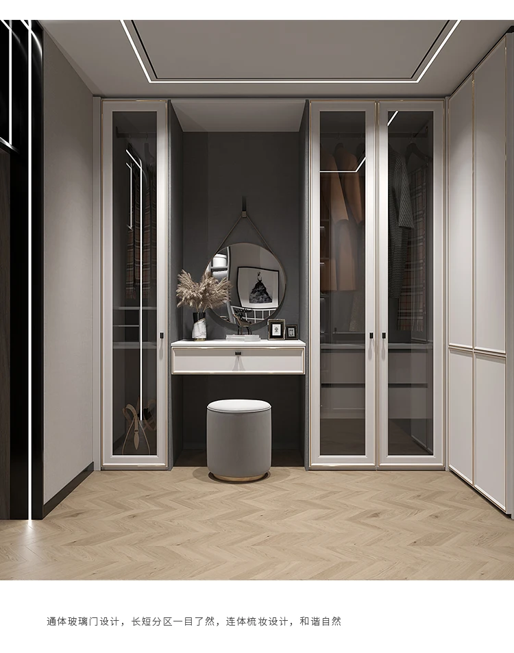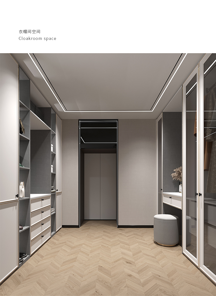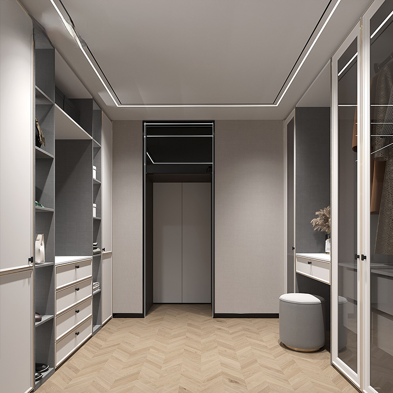 Customized household full house wardrobe with modern minimalist design, walk-in cloakroom