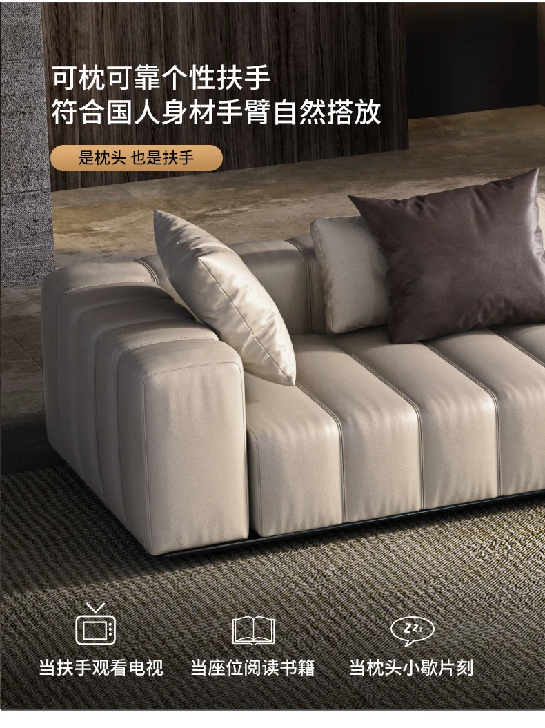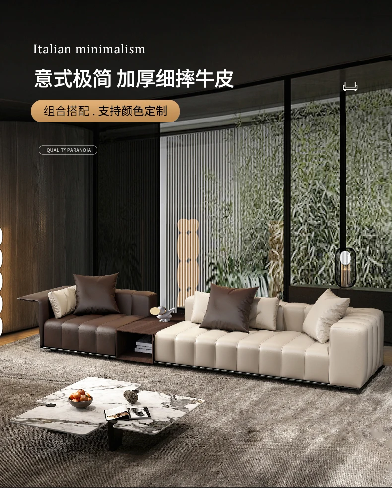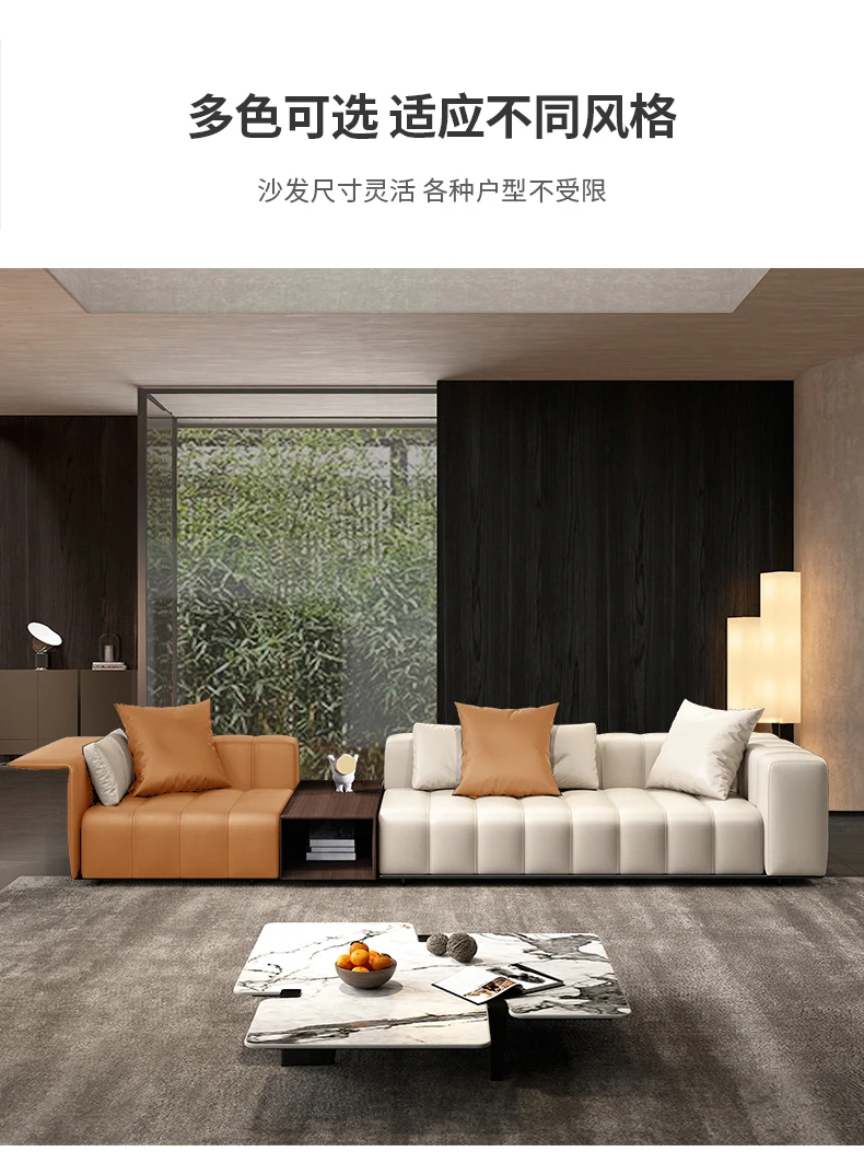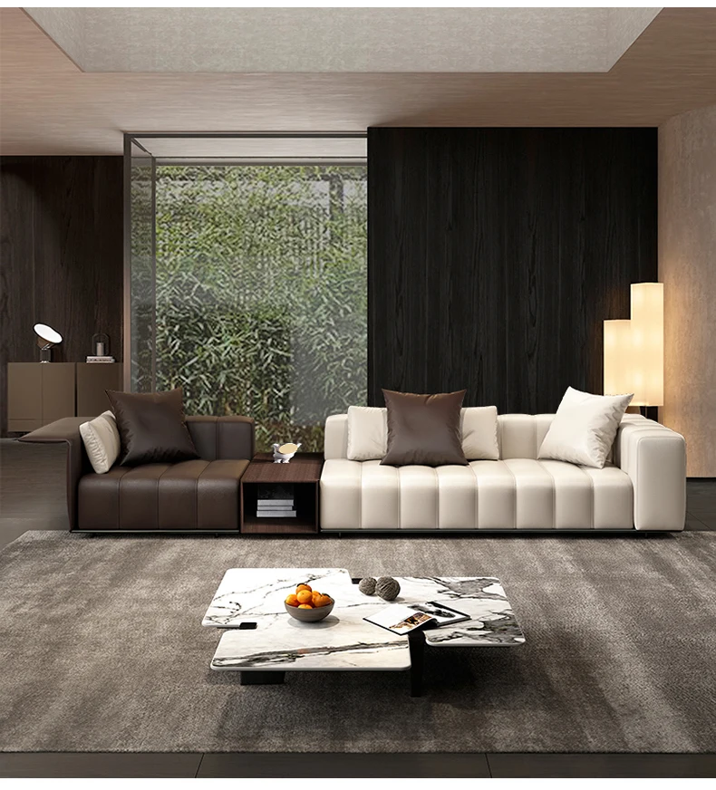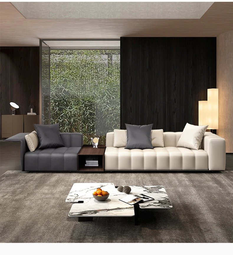 Customized Italian luxury minimalist piano key sofa large villa living room customized first floor cowhide piano leather sofa