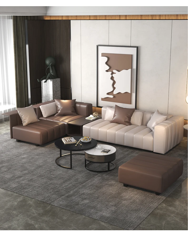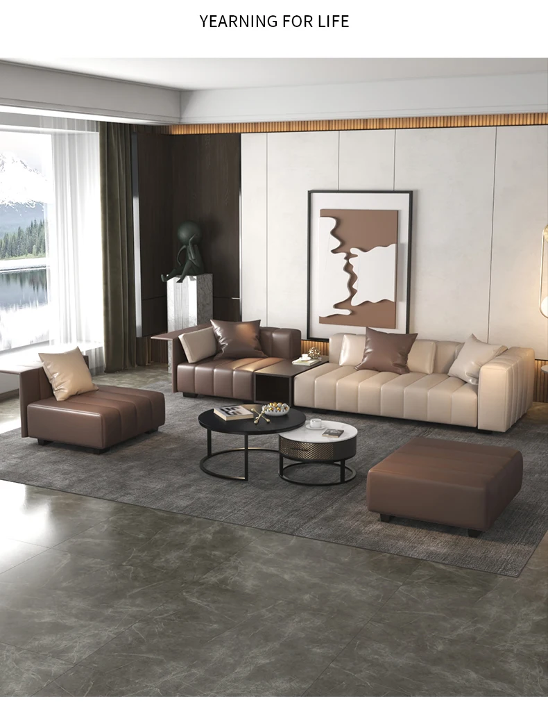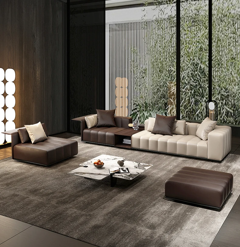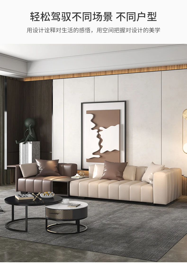 Customized Italian luxury minimalist piano key sofa large villa living room customized first floor cowhide piano leather sofa