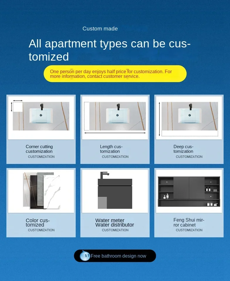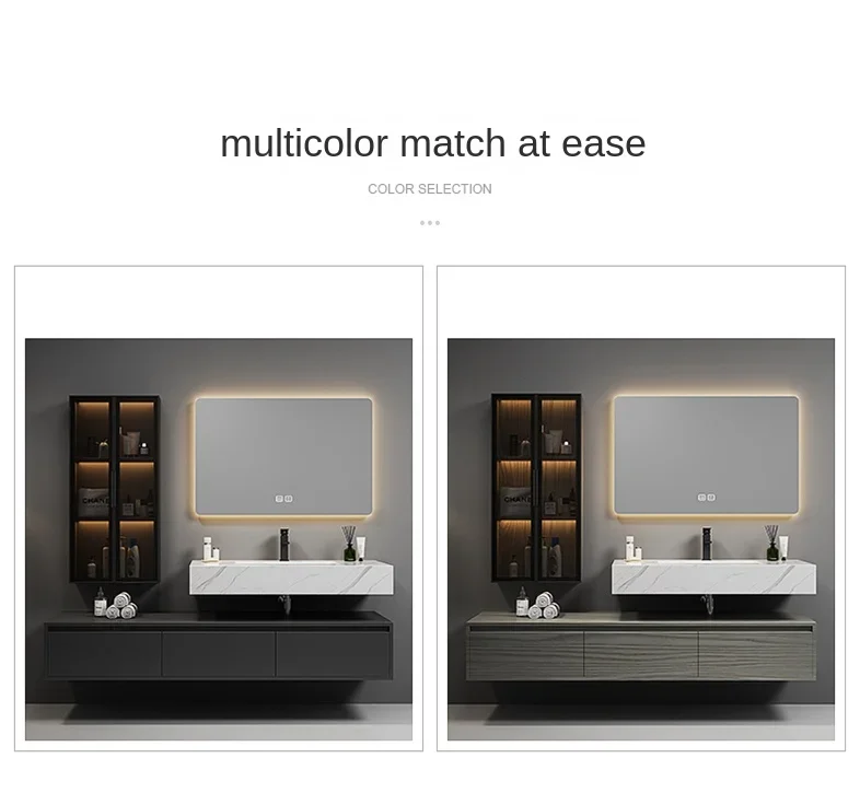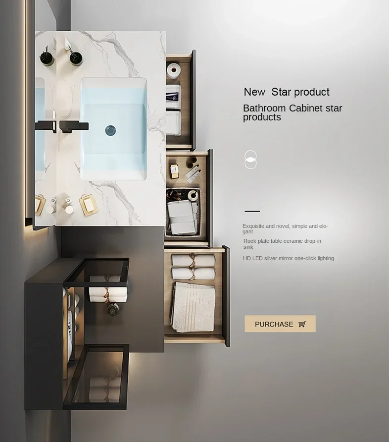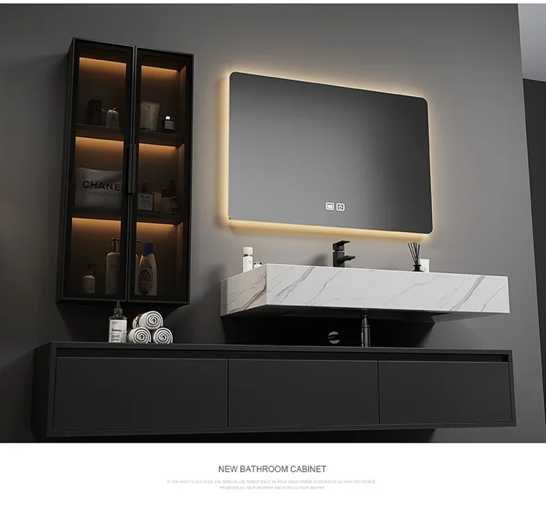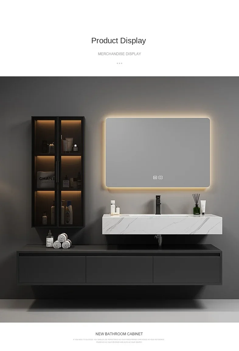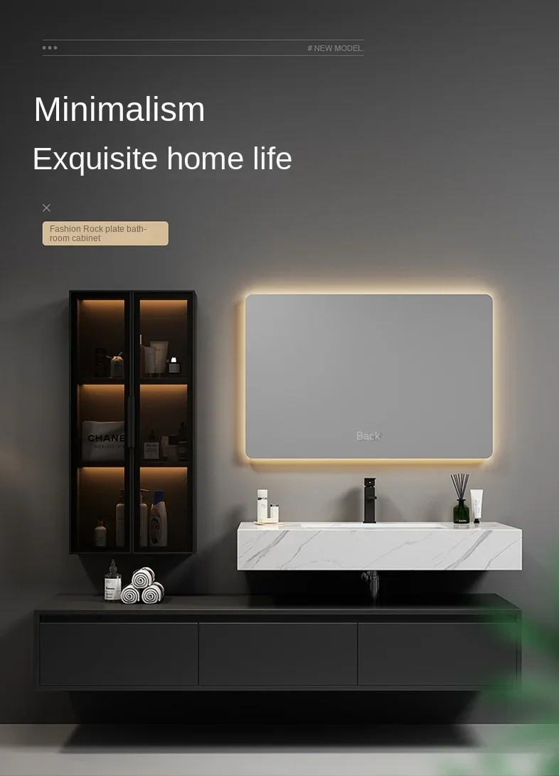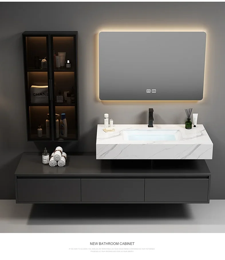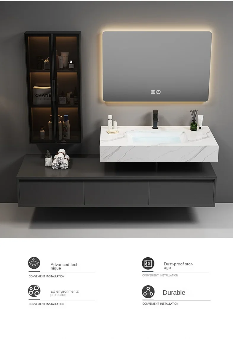 Customized Rock Panel Bathroom Cabinet Minimalist Modern Vanity Toilet Storage Sink