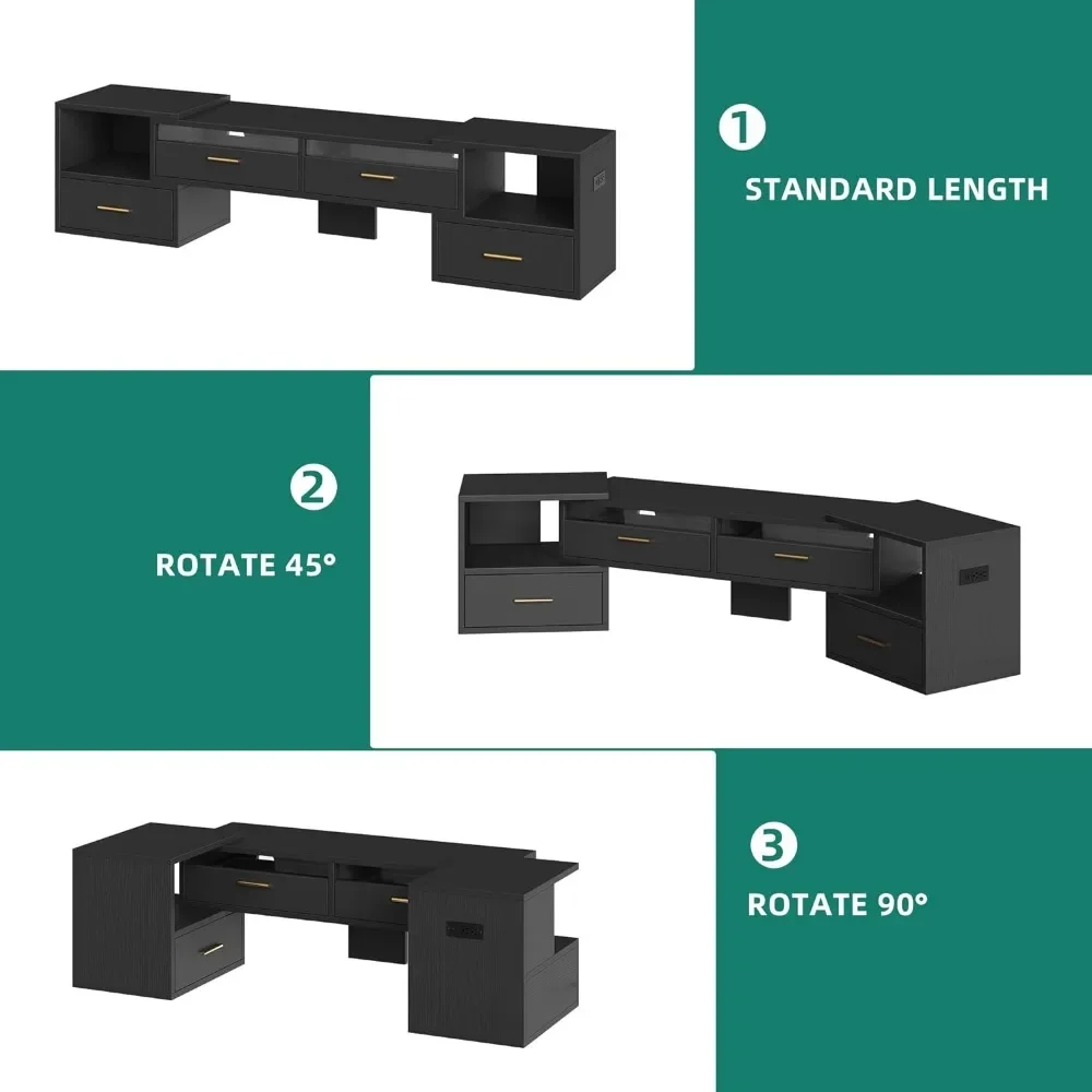 - Deformable & Retractable Multifunctional TV Stand: This media console is made up of 3 Pieces, which is deformable and rotated up to 90°, no matter where you put the TV stand at home, this TV stand will fit well into your life to suit your different needs for living space: TV stand, storage shelf, corner TV stand or media console. Enjoy the fun of DIY combinations and decorate your room in any way you like