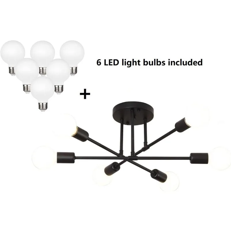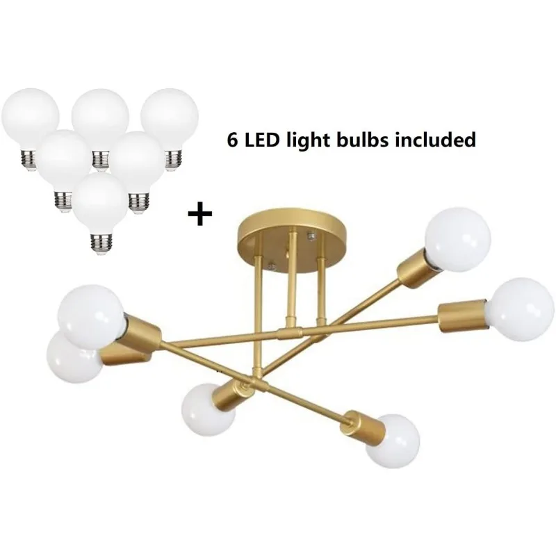 Dellemade Modern Sputnik Chandelier, 6-Light Ceiling Light, 6 LED Light Bulbs Included(Black/Gold)optional