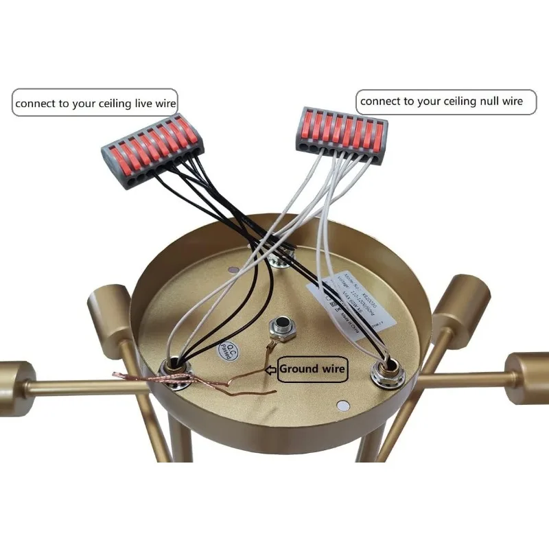 - The installation is no problem! The 6 branches are already wired. When you install the lamp, you just need to screw the branches into the central ball and fix them.