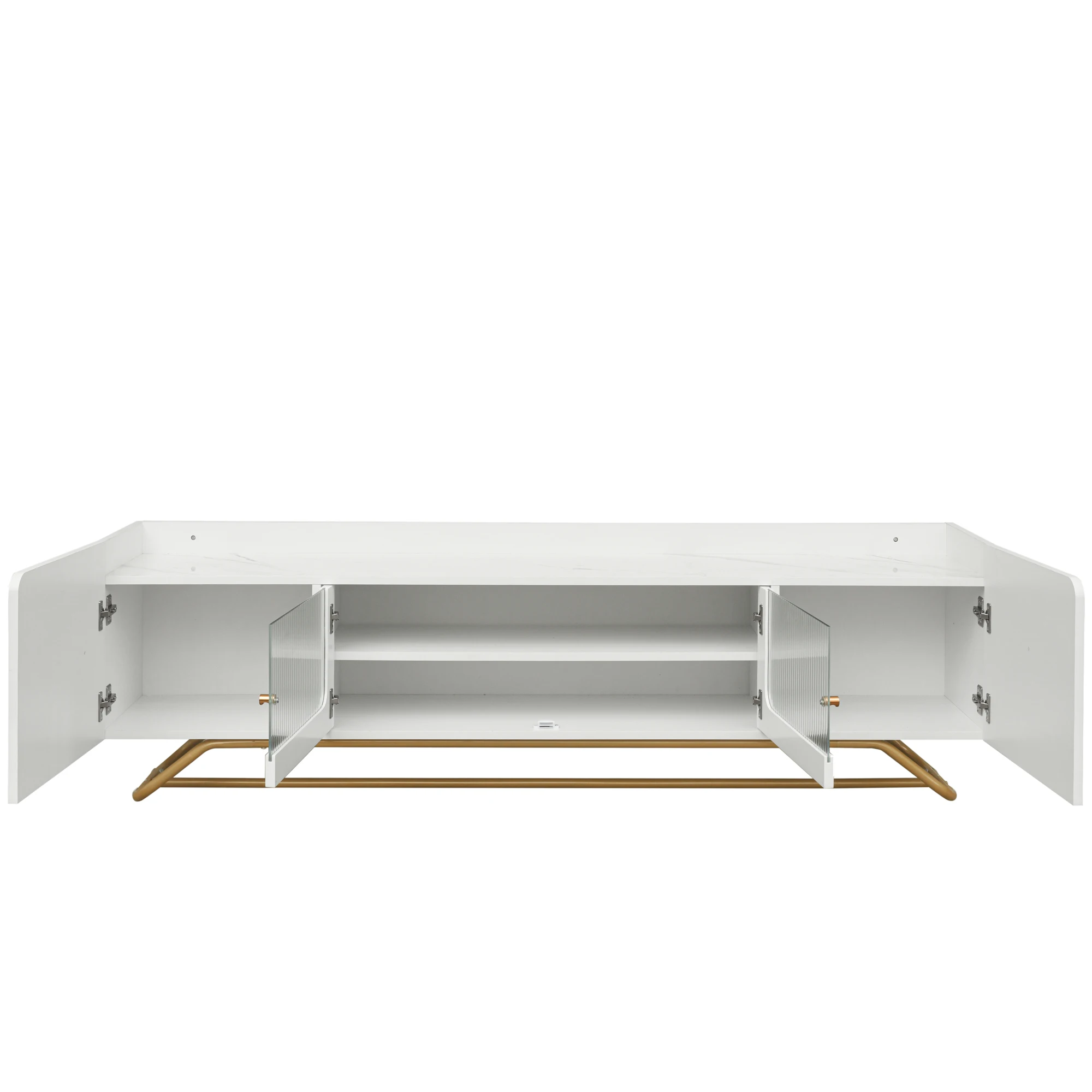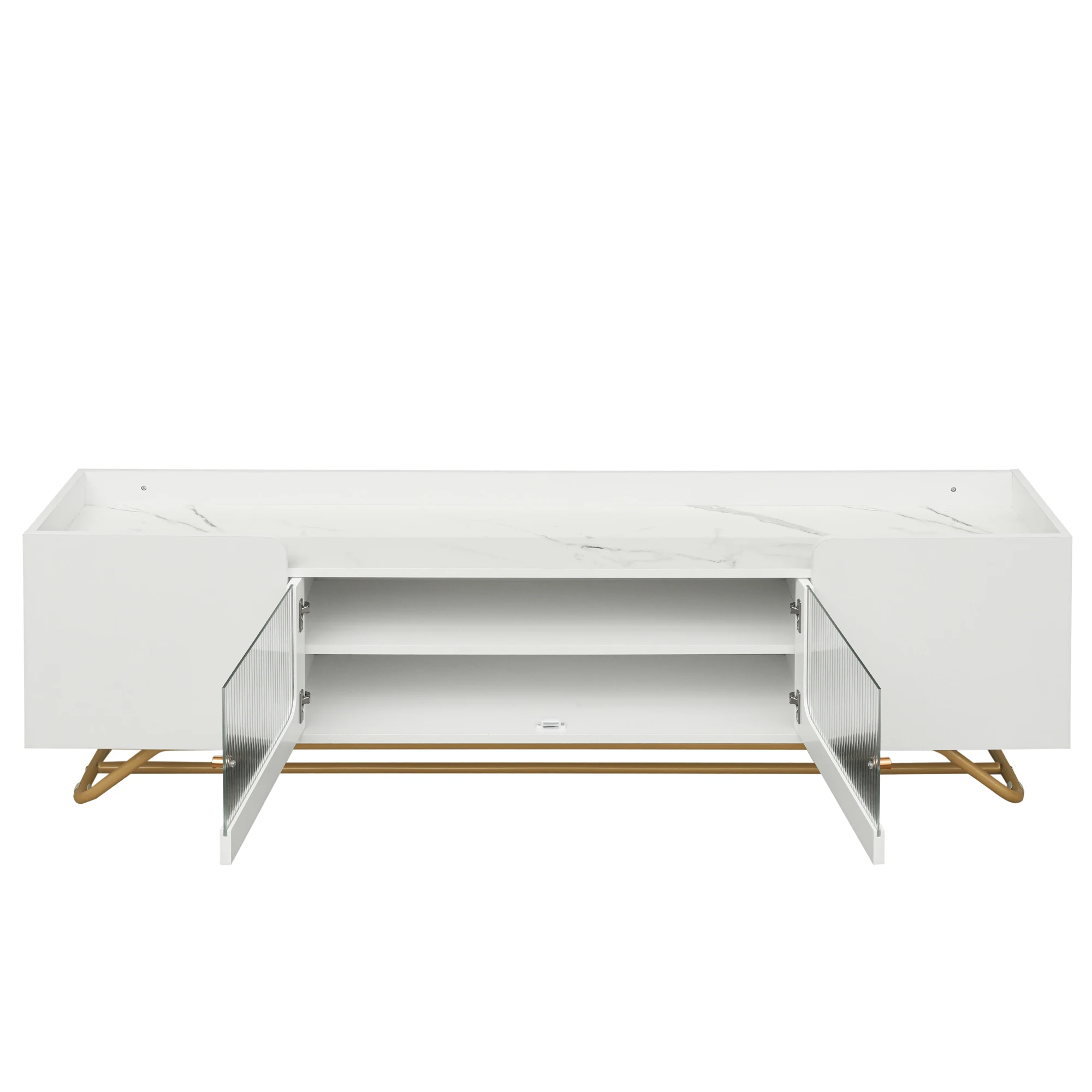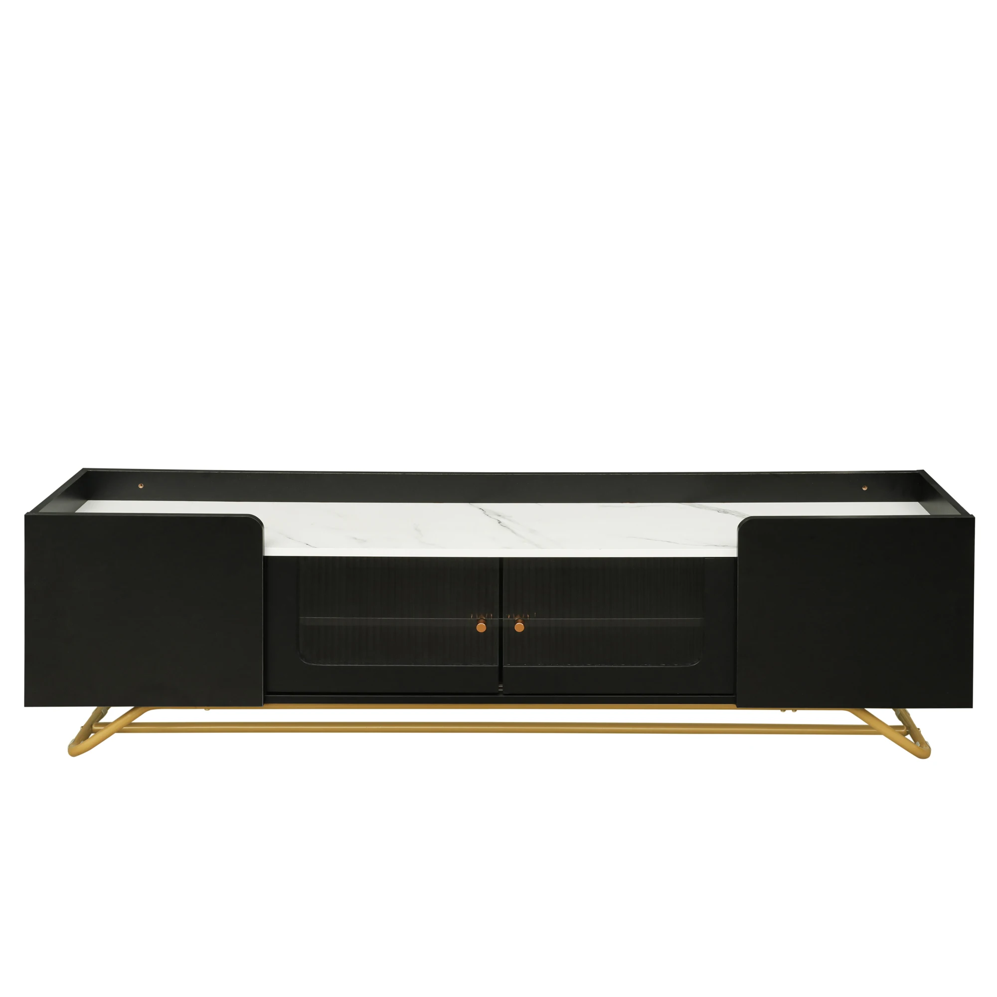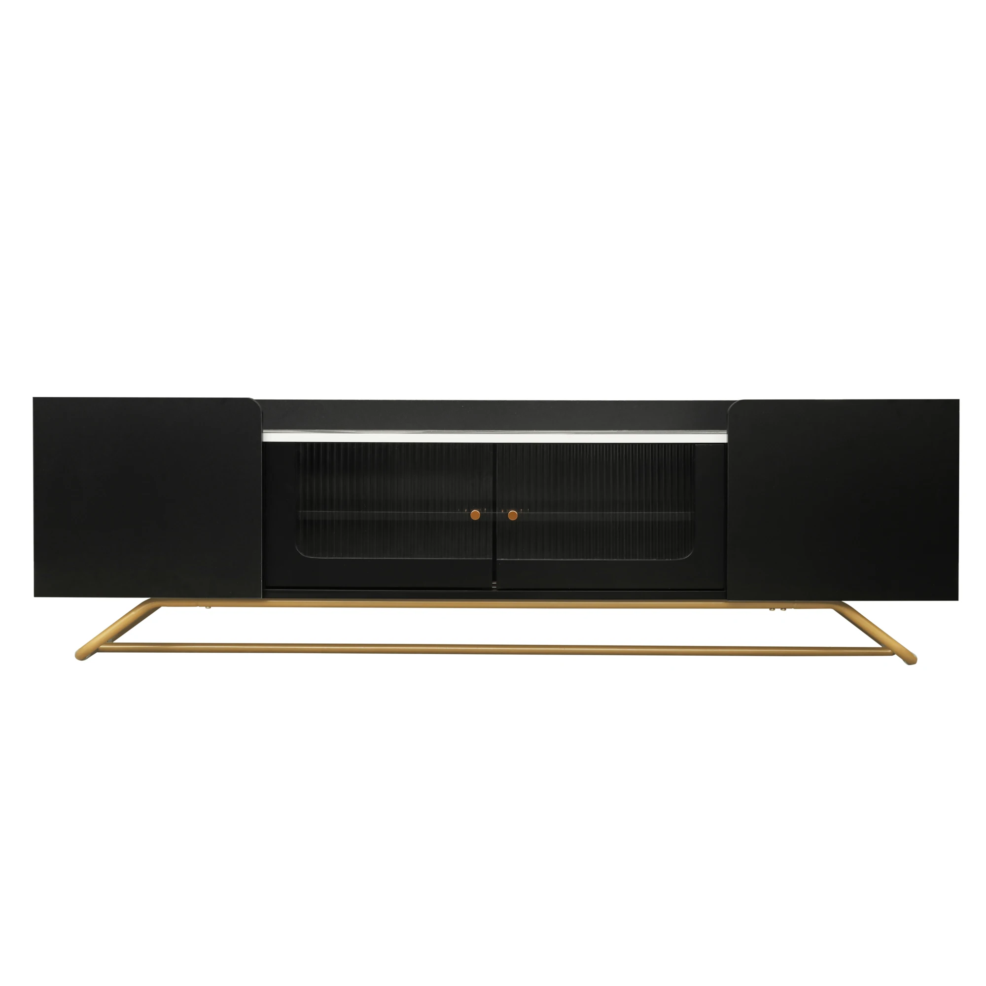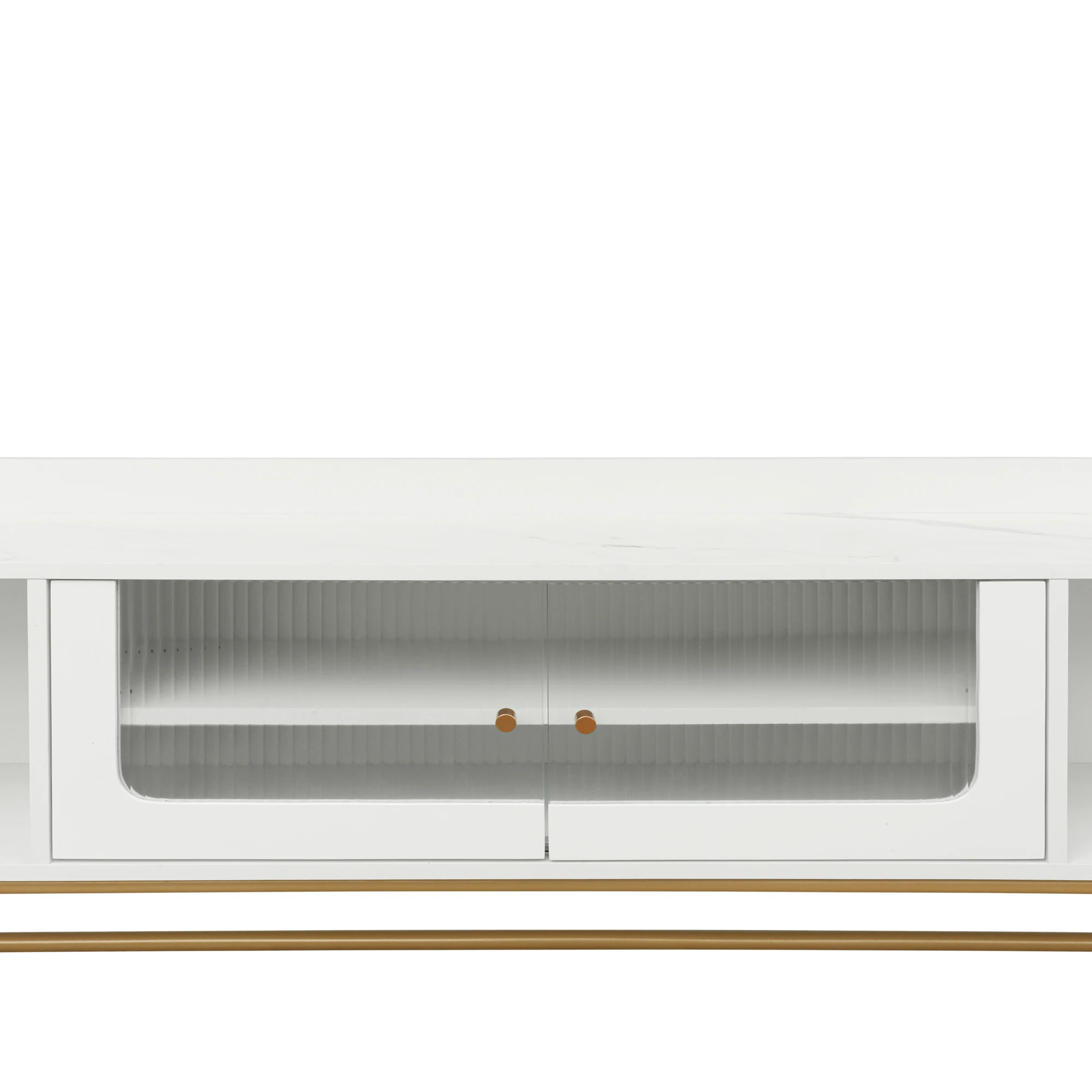 Fluted Glass Doors: The standout feature of this TV stand is the central cabinet, the fluted glass doors with metal handles offer a unique visual appeal, drawing attention and providing an element of privacy. Additionally, the fluted glass surfaces are easy to clean and maintain over time.