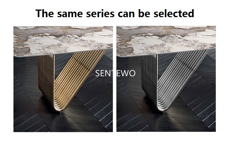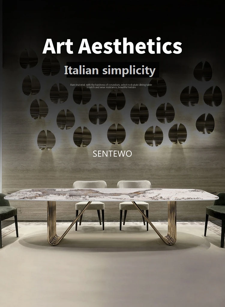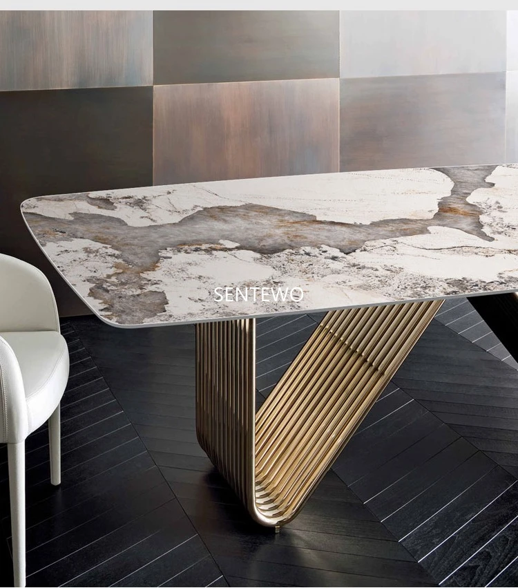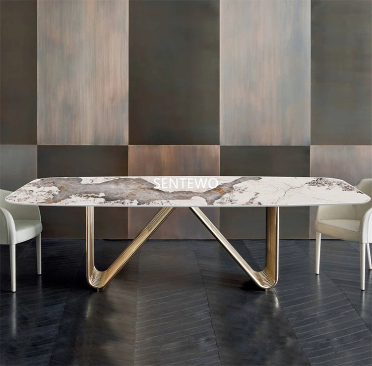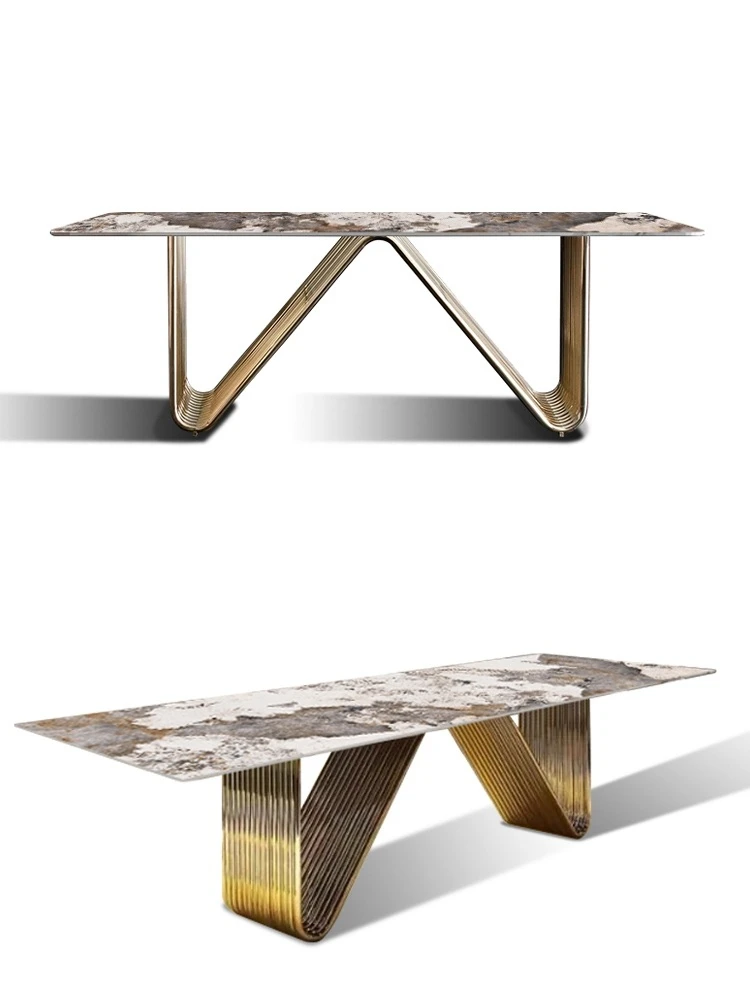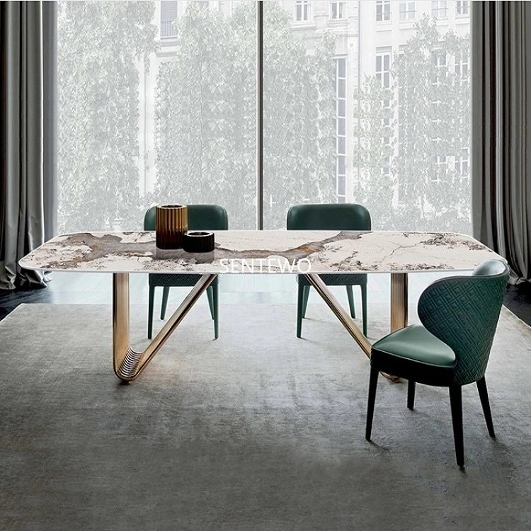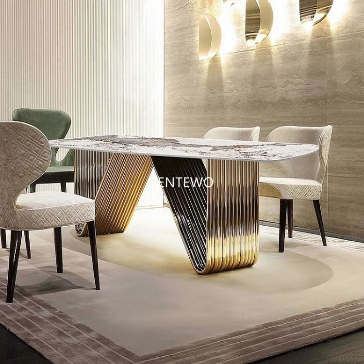 Designer Luxury dinning room Marble Rock Slab dining table set 6 chairs mesa esstisch furniture marbre Stainless steel gold base