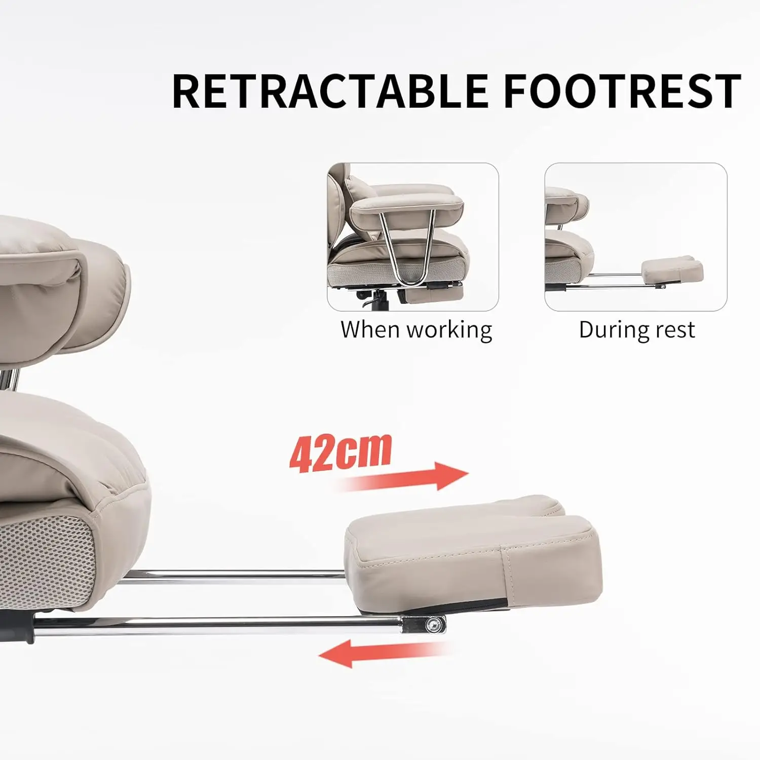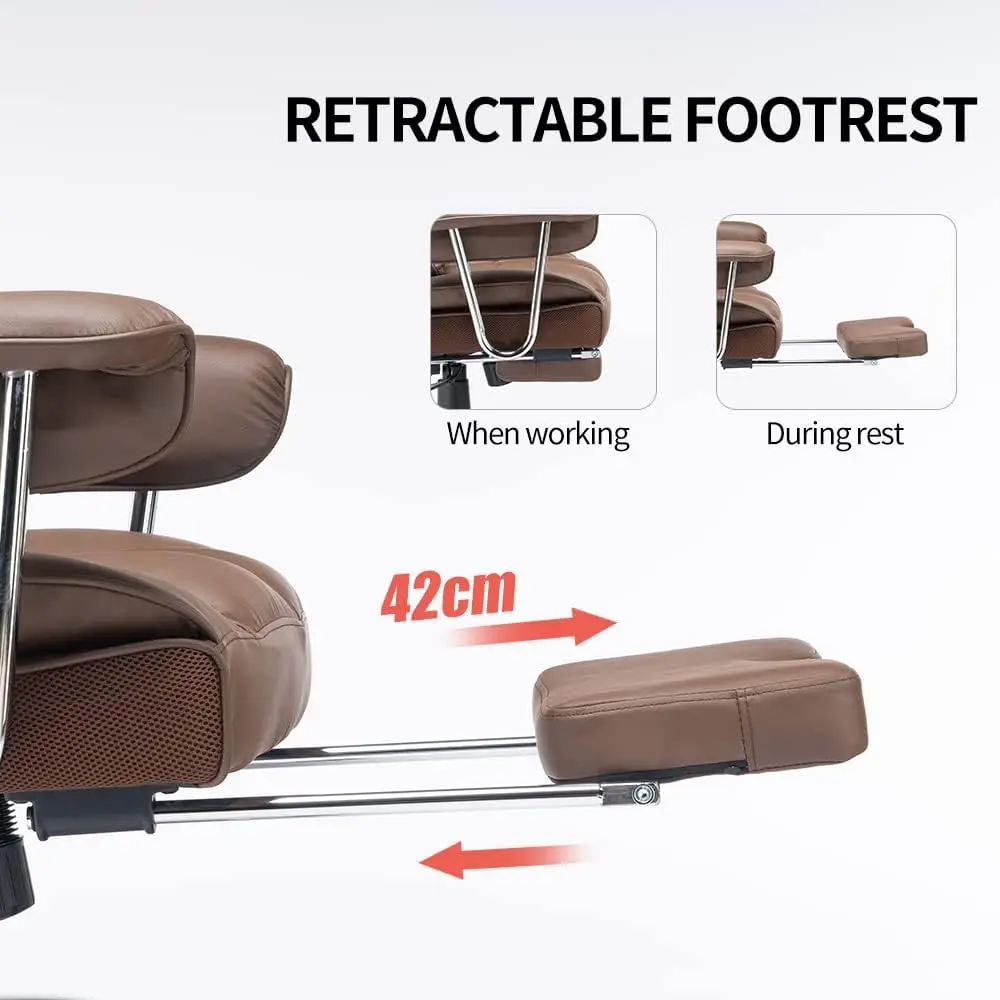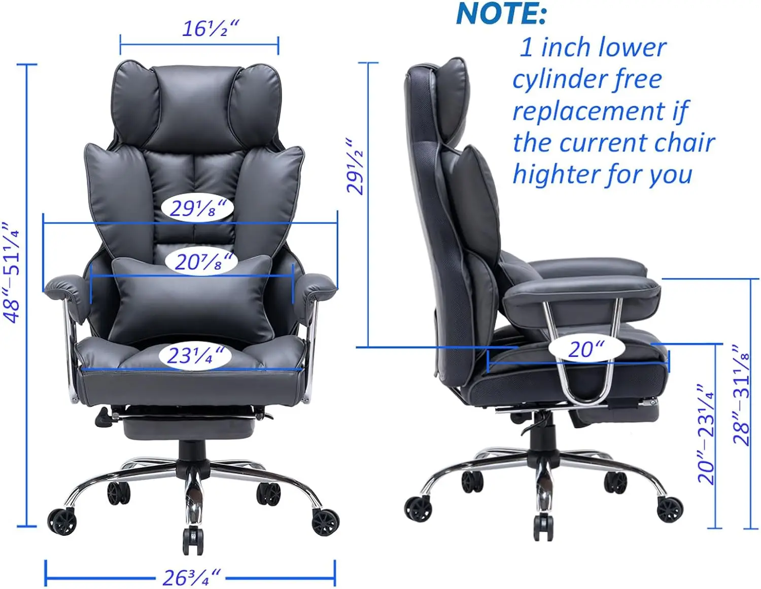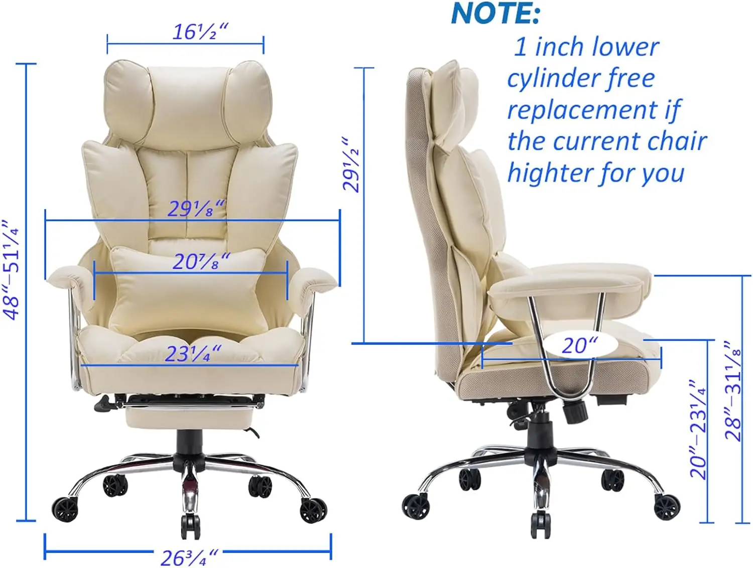 - COMFORTABLE OFFICE CHAIR - The ergonomic office chair equip a dual-layered sponge seat cushion. The big office chair backrest and independent lumbar support gently wrap around your body ,support your lower back, thoughtfully designed for the big and tall office chair to keep you comfortable during long hours of working, studying, or gaming. The leather office chair provides unparalleled comfort. Moreover, this executive chair with leg rest adds an extra dimension of relaxation to your workspace