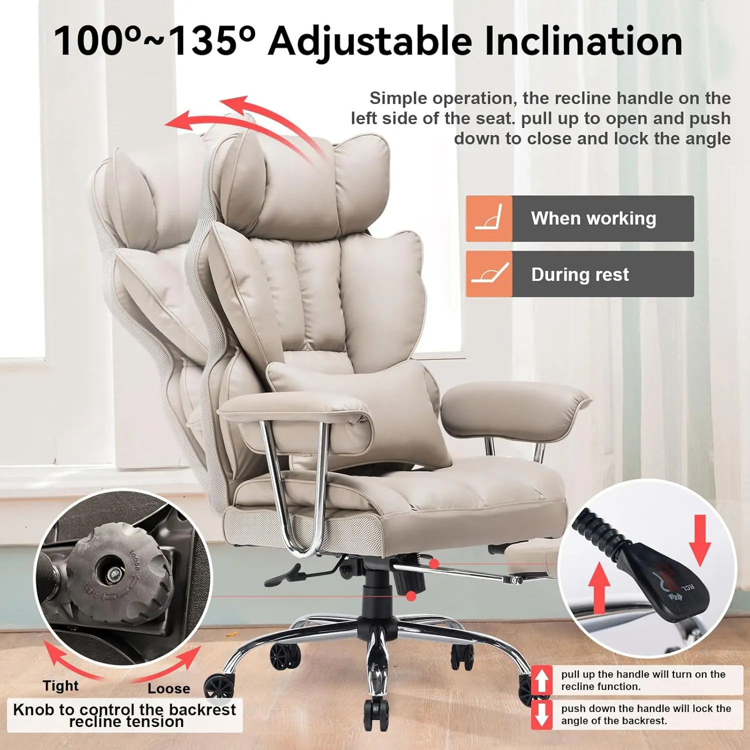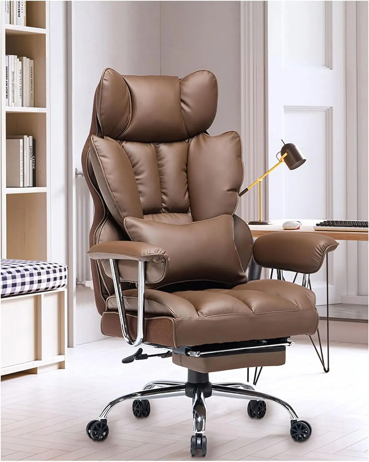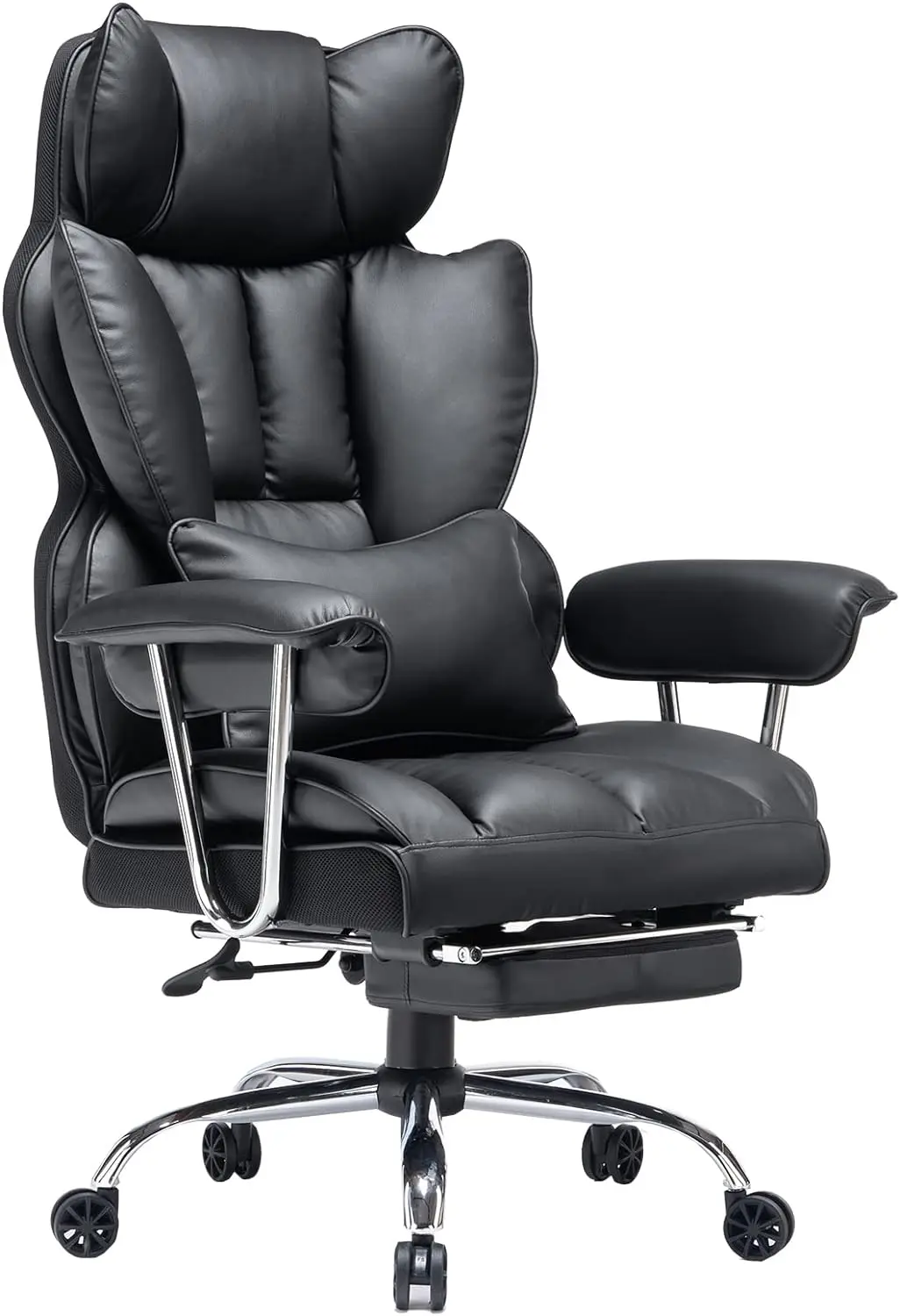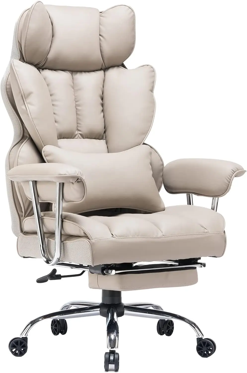 Desk Office Chair 400LBS, Big High Back PU Leather Computer Chair, Executive Office Chair with Leg Rest and Lumbar Support