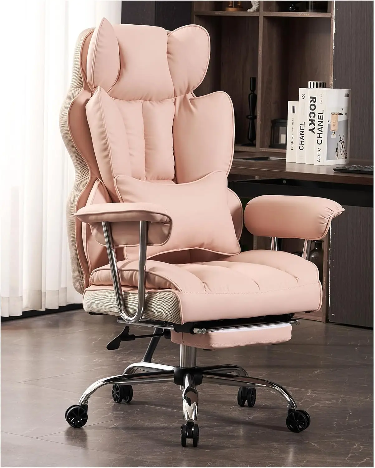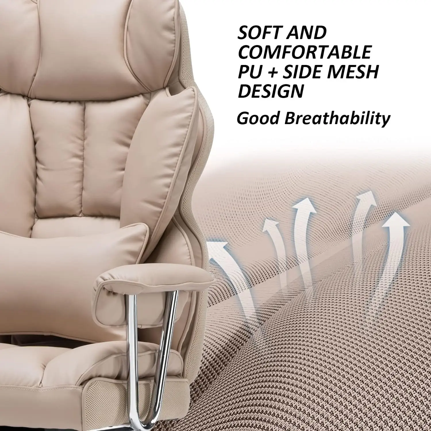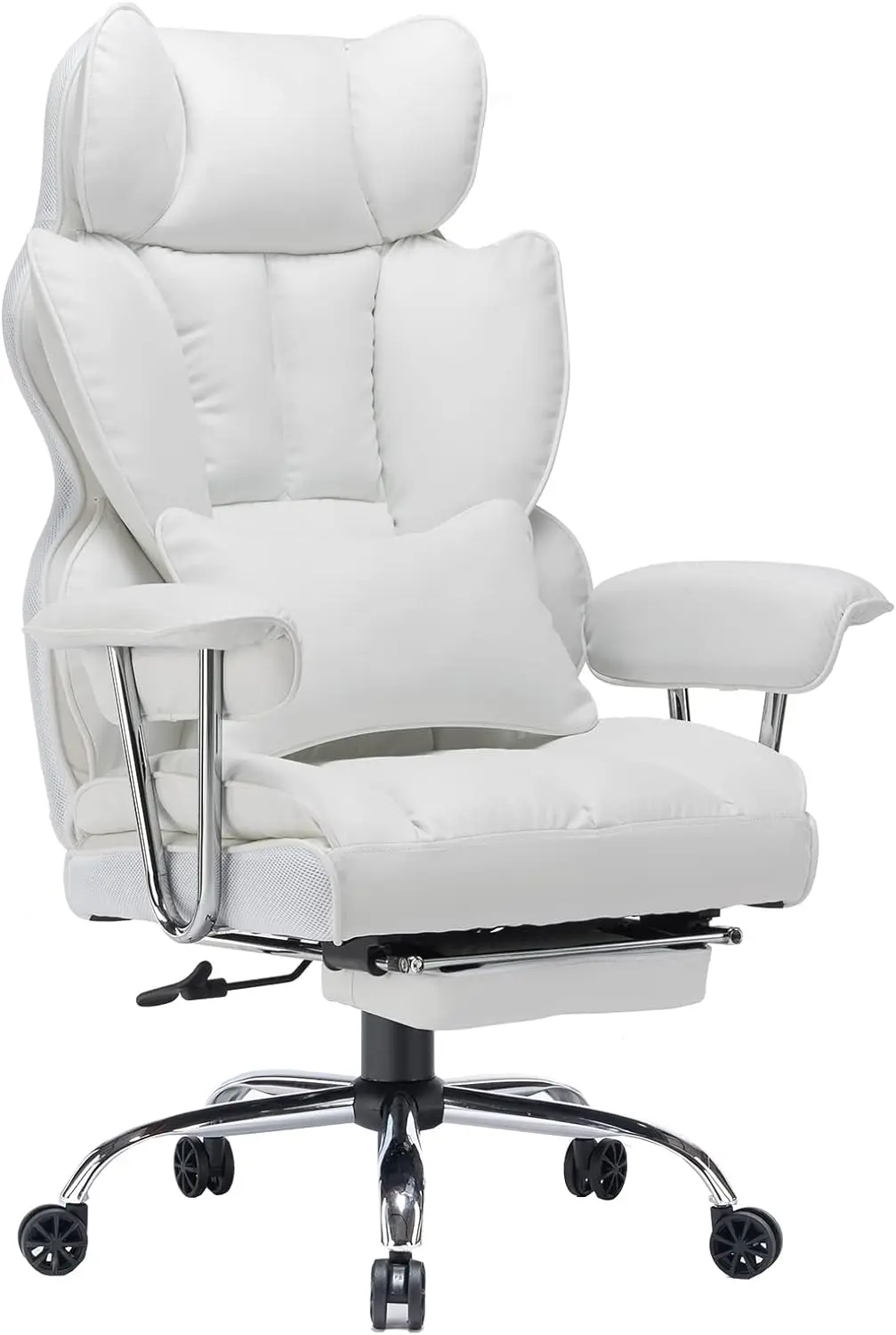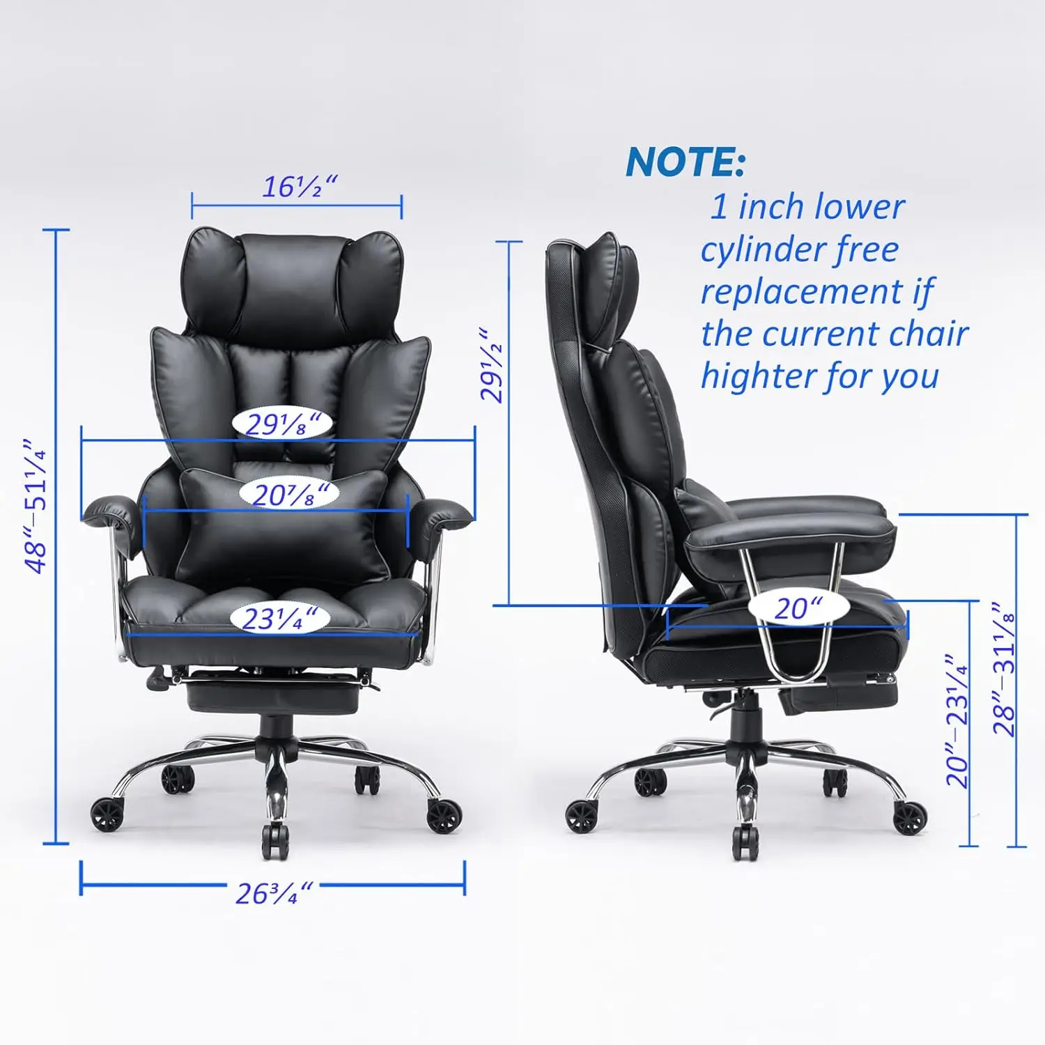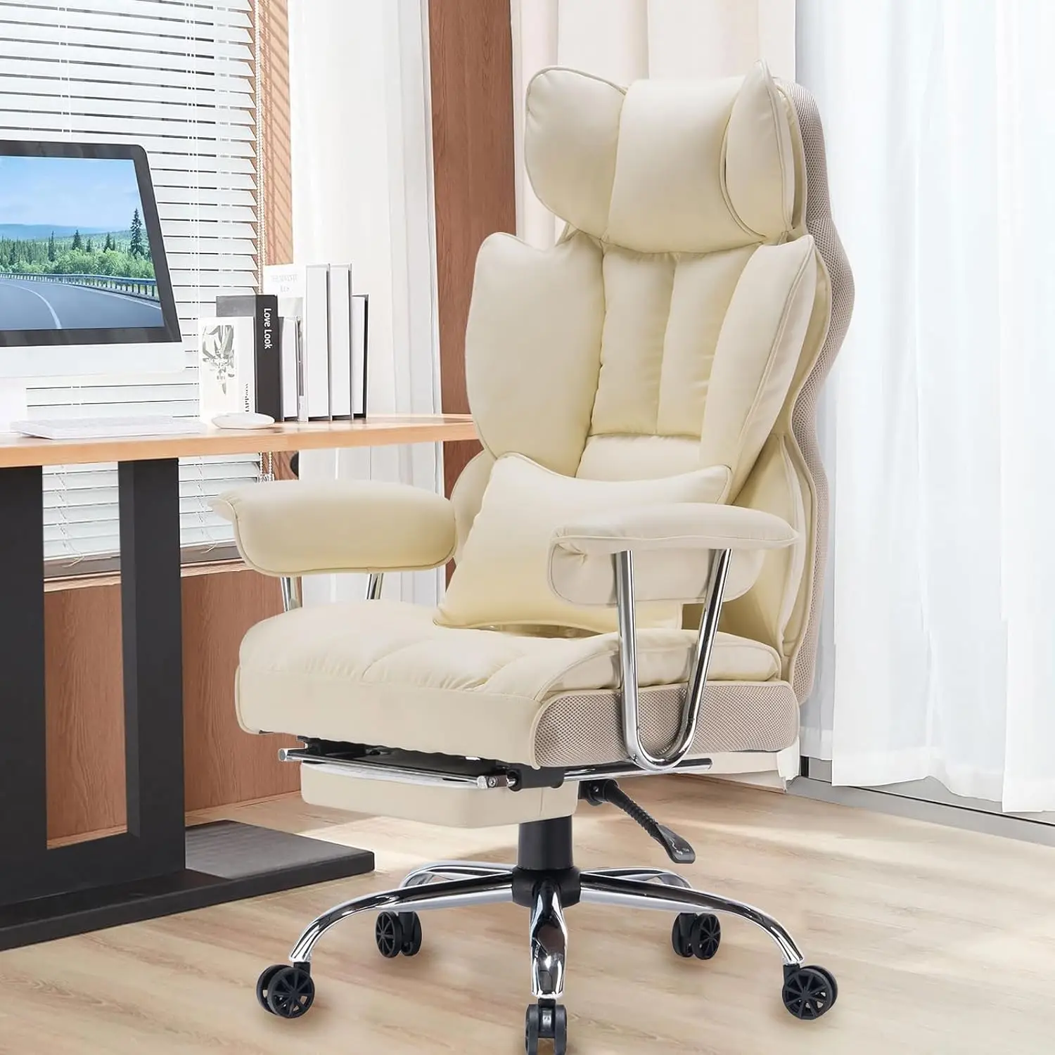 Desk Office Chair 400LBS, Big High Back PU Leather Computer Chair, Executive Office Chair with Leg Rest and Lumbar Support