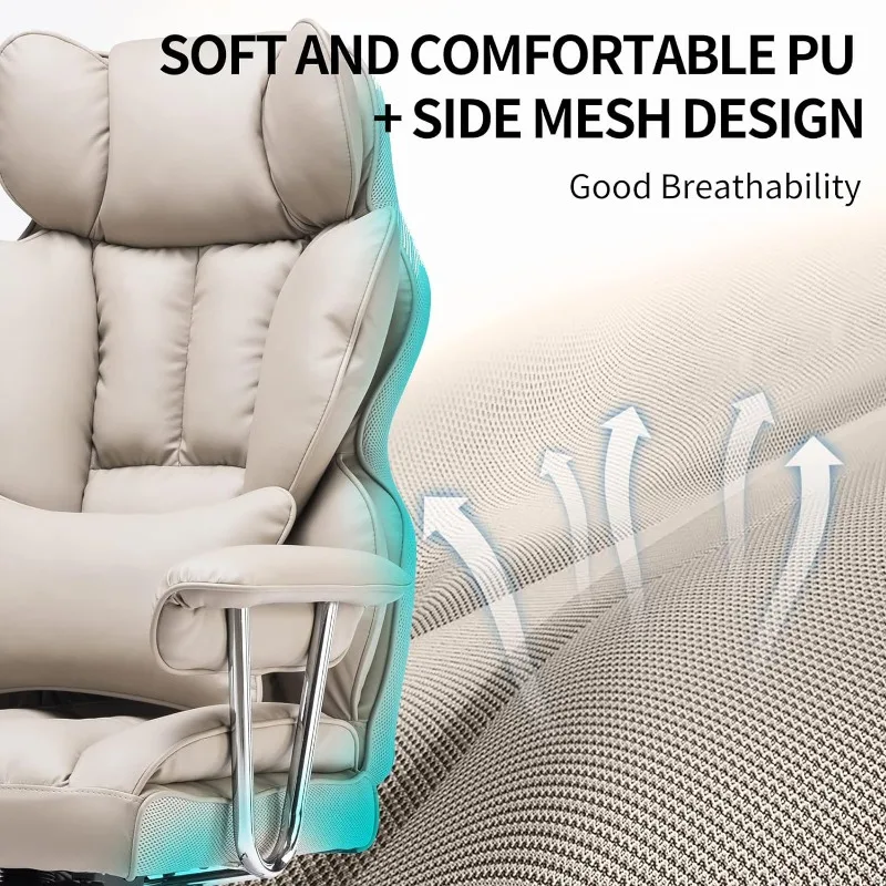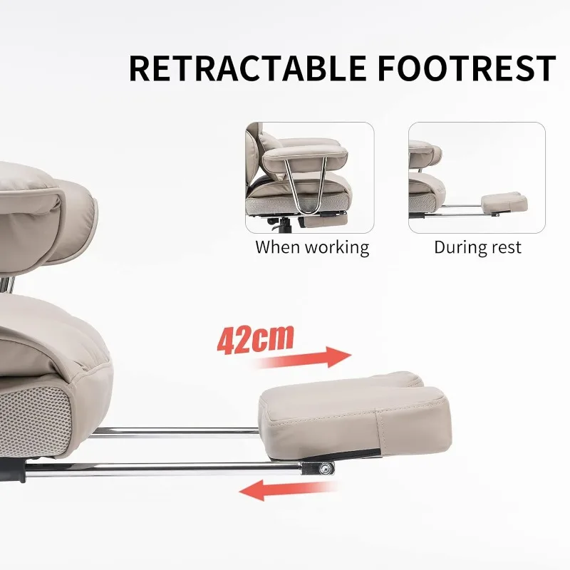 COMFORTABLE OFFICE CHAIR - The ergonomic office chair equip a dual-layered sponge seat cushion. The big office chair backrest and independent lumbar support gently wrap around your body ,support your lower back, thoughtfully designed for the big and tall office chair to keep you comfortable during long hours of working, studying, or gaming. The leather office chair provides unparalleled comfort. Moreover, this executive chair with leg rest adds an extra dimension of relaxation to your workspace