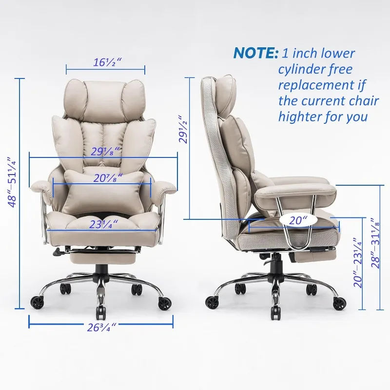 CERTIFIED QUALITY WIDE OFFICE CHAIR- Every part of the task chair has been carefully selected and crafted, a necessary investment to help customers worry less. the leather material on the office chair gives you a good touch. The office chair with leg rest is not only comfortable but also stylish.Smooth wheels, SGS certified Class 3 gas cylinder, strong supporting metal base, all tested over 100,000 times and certified for safety and quality. BIFIMA certified, the big and tall office chair is rel