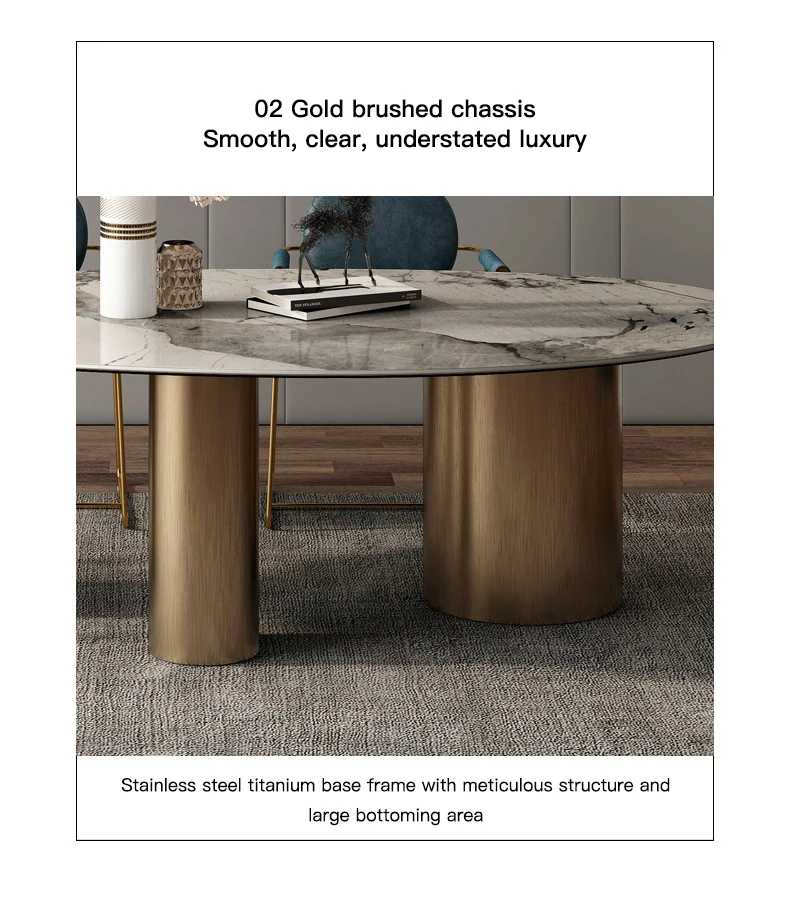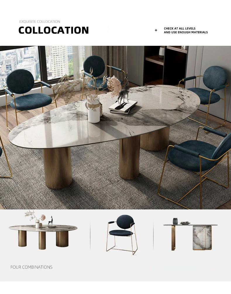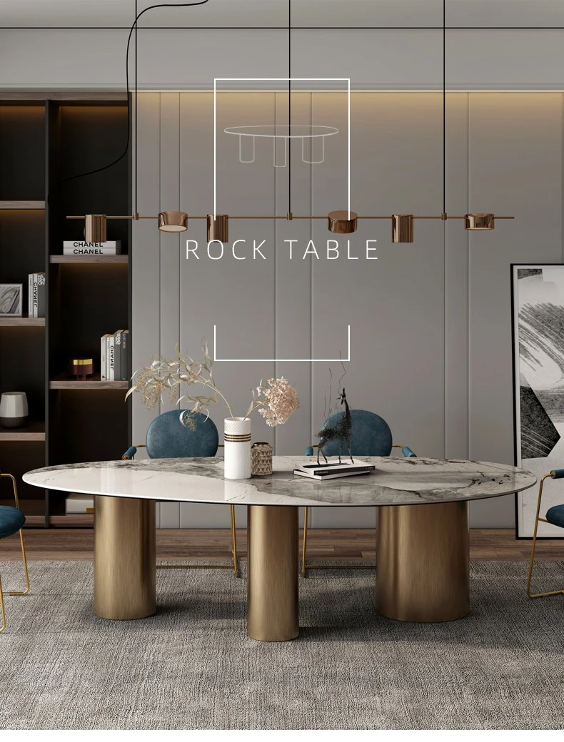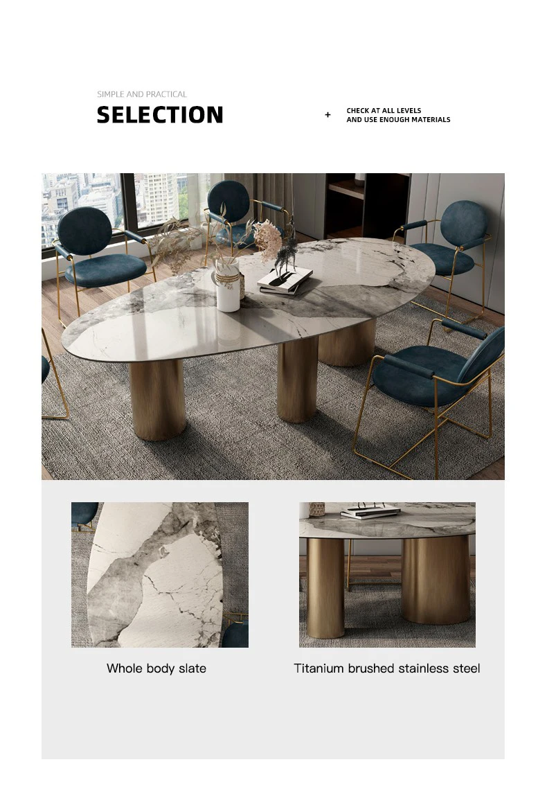Italian Bright Oval Slate Dining Table Chair Combination Large Family Modern Minimalist Luxury Villa Mesa Comedor Furniture WK
