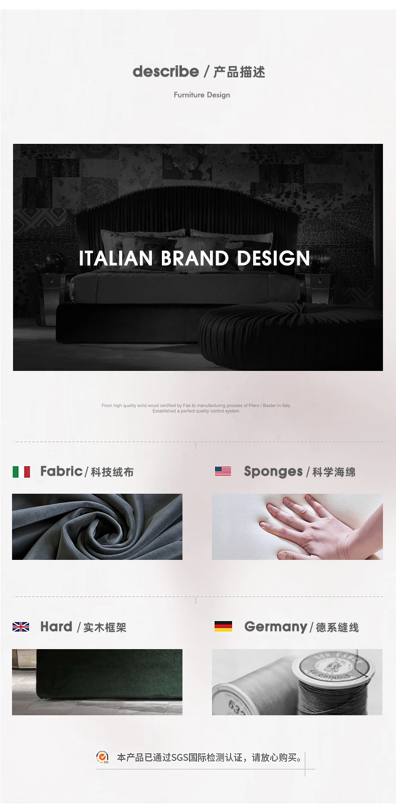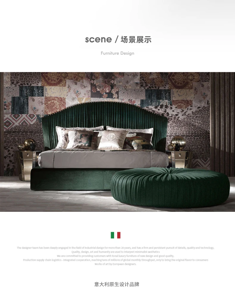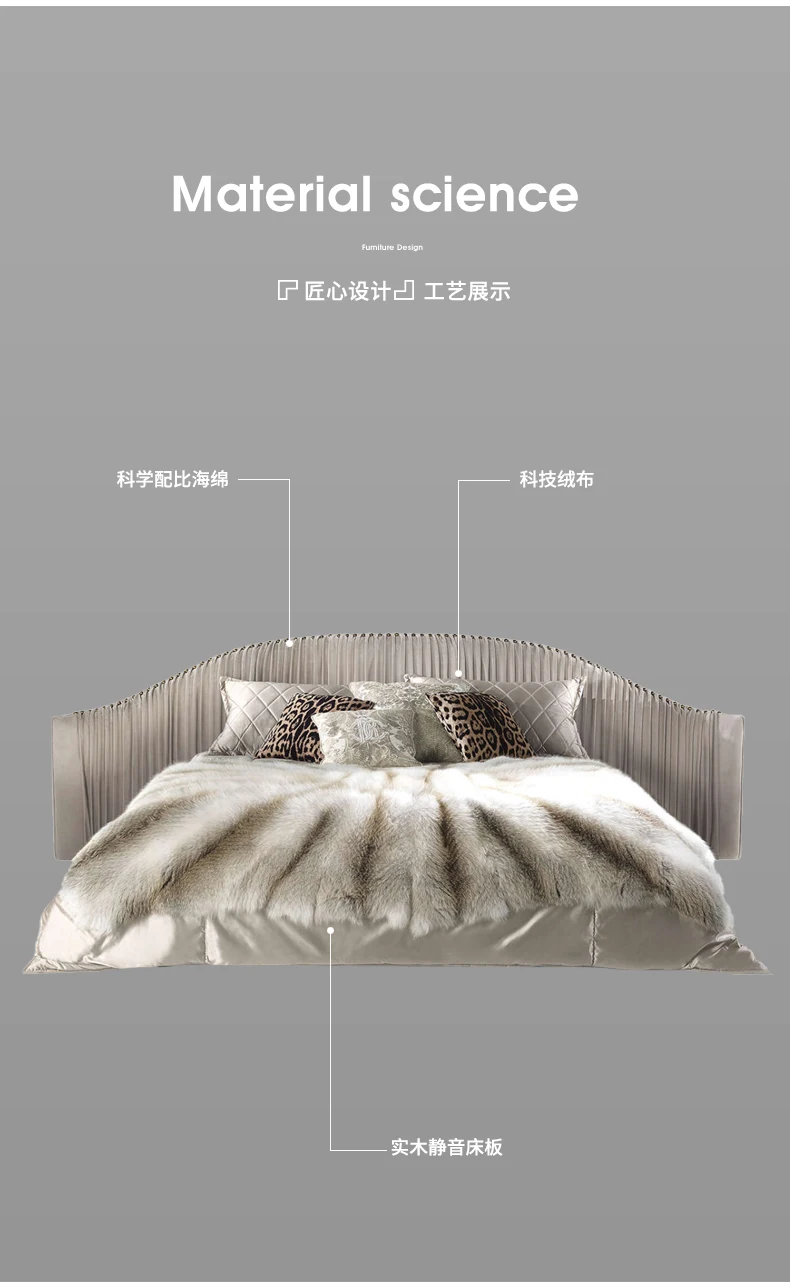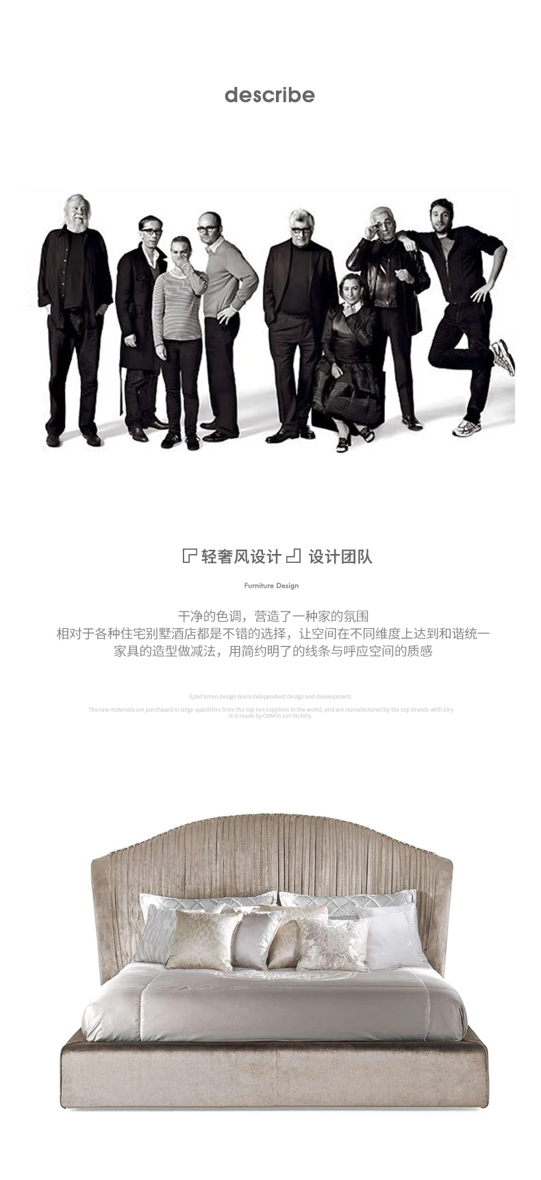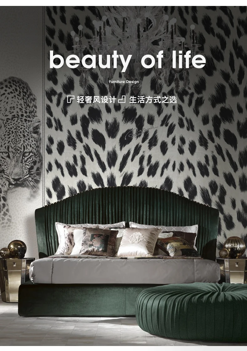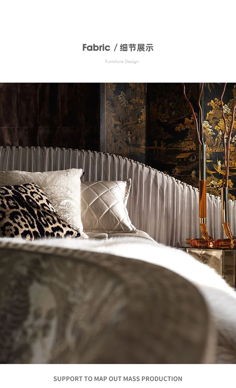 Italian designer bed Italian leather bed Light luxury modern master bedroom high-end luxury villa bed widescreen floor bed