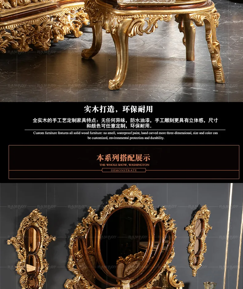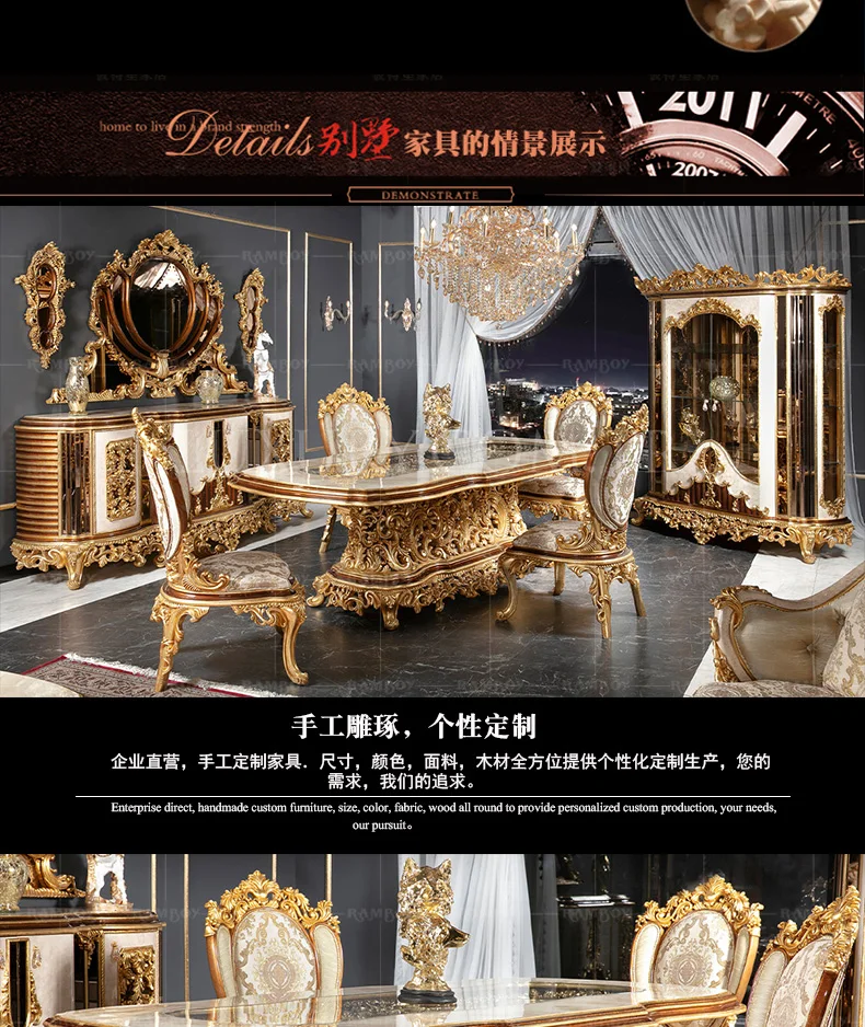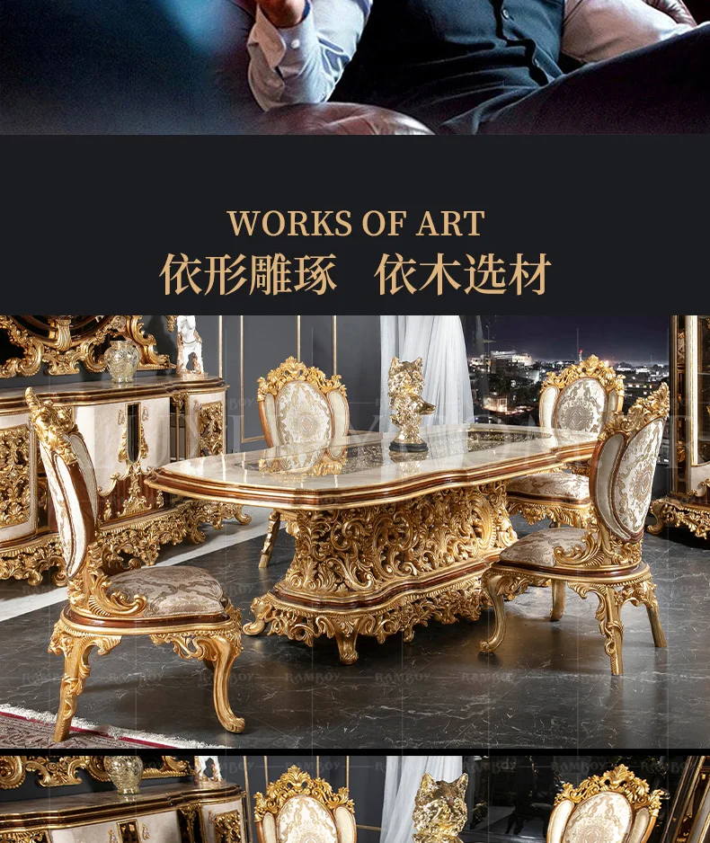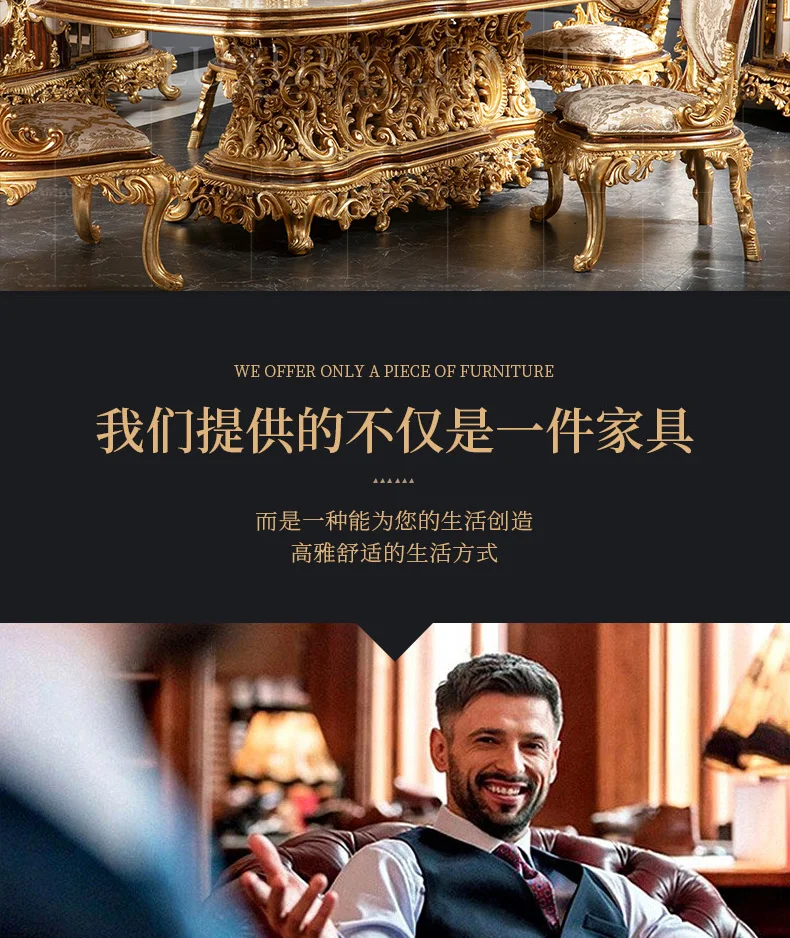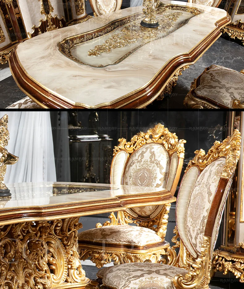 Italian large French dining table villa dining table European court solid wood dining table luxury furniture customization